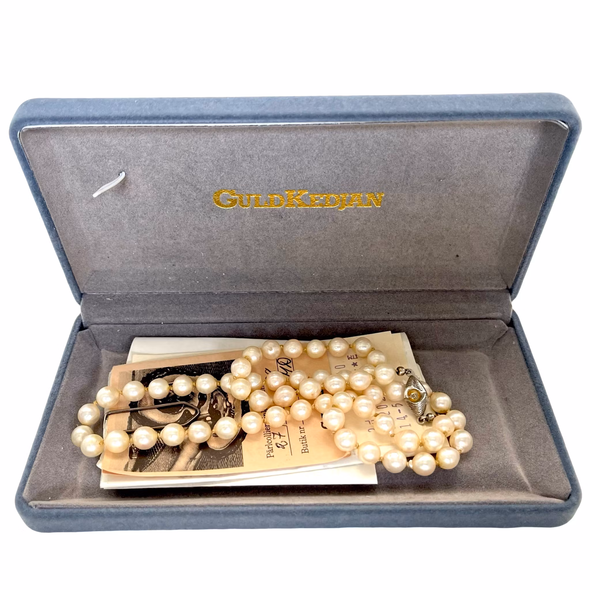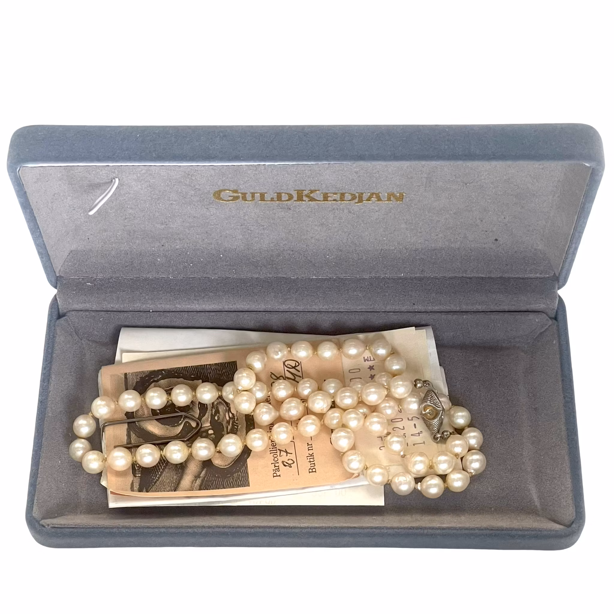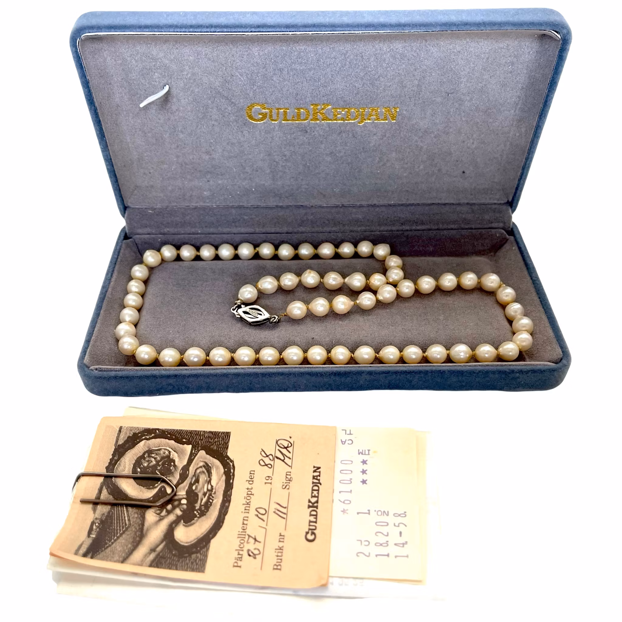 Naszyjnik z pereł hodowlanych o średnicy ok. 7 mm 1 495 kr Dodaj do koszyka Informacja Vintage Collier odlade pärlor ca 7 mmLängd: ca 50 cm, originaletui, en parla skadad.