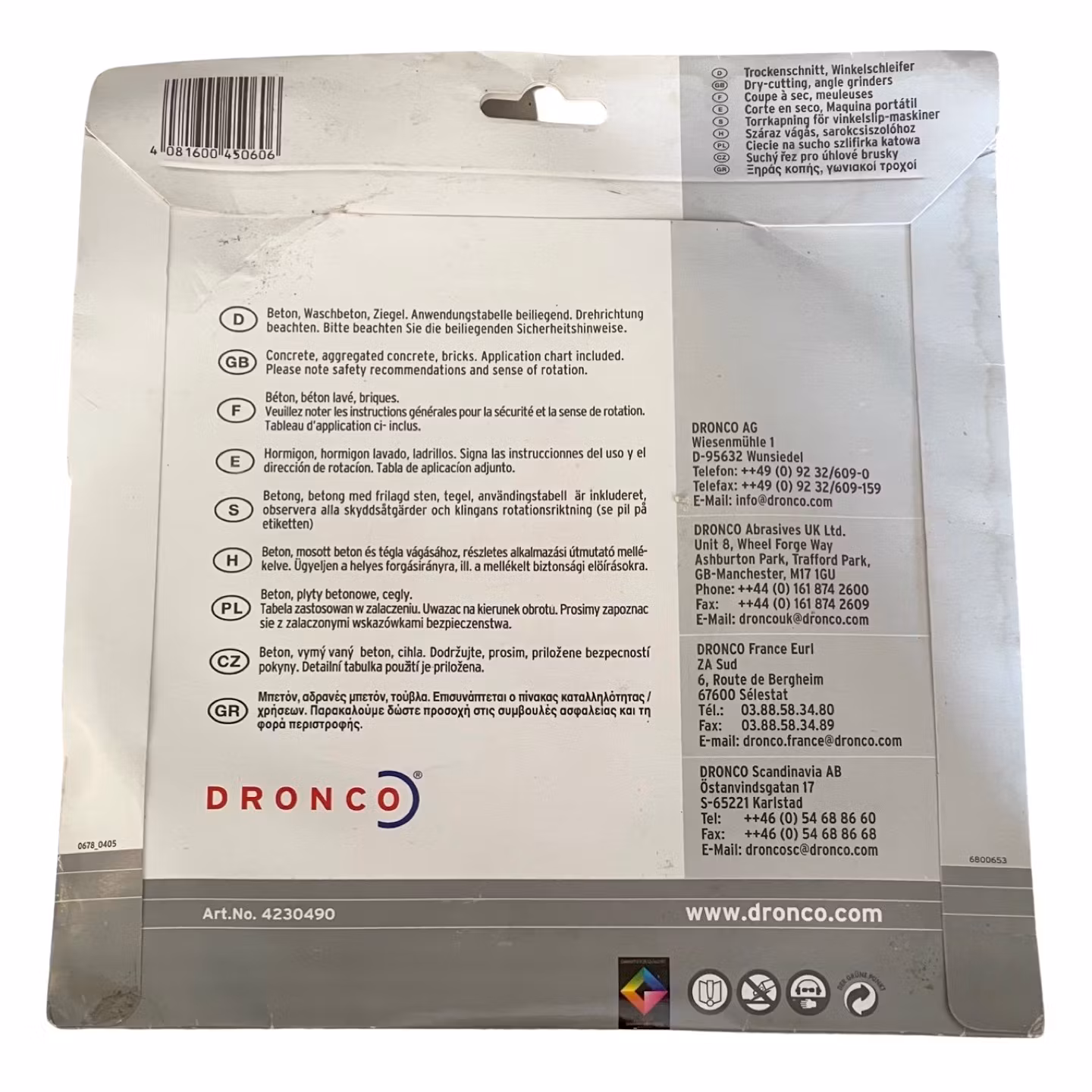 Diamantkapskiva Dronco ST 5 195 kr Dodaj do koszyka Informacja Dronco ST 5, Diamantkapskiva sintradca 230 x 22,23 mm, 6600rpm