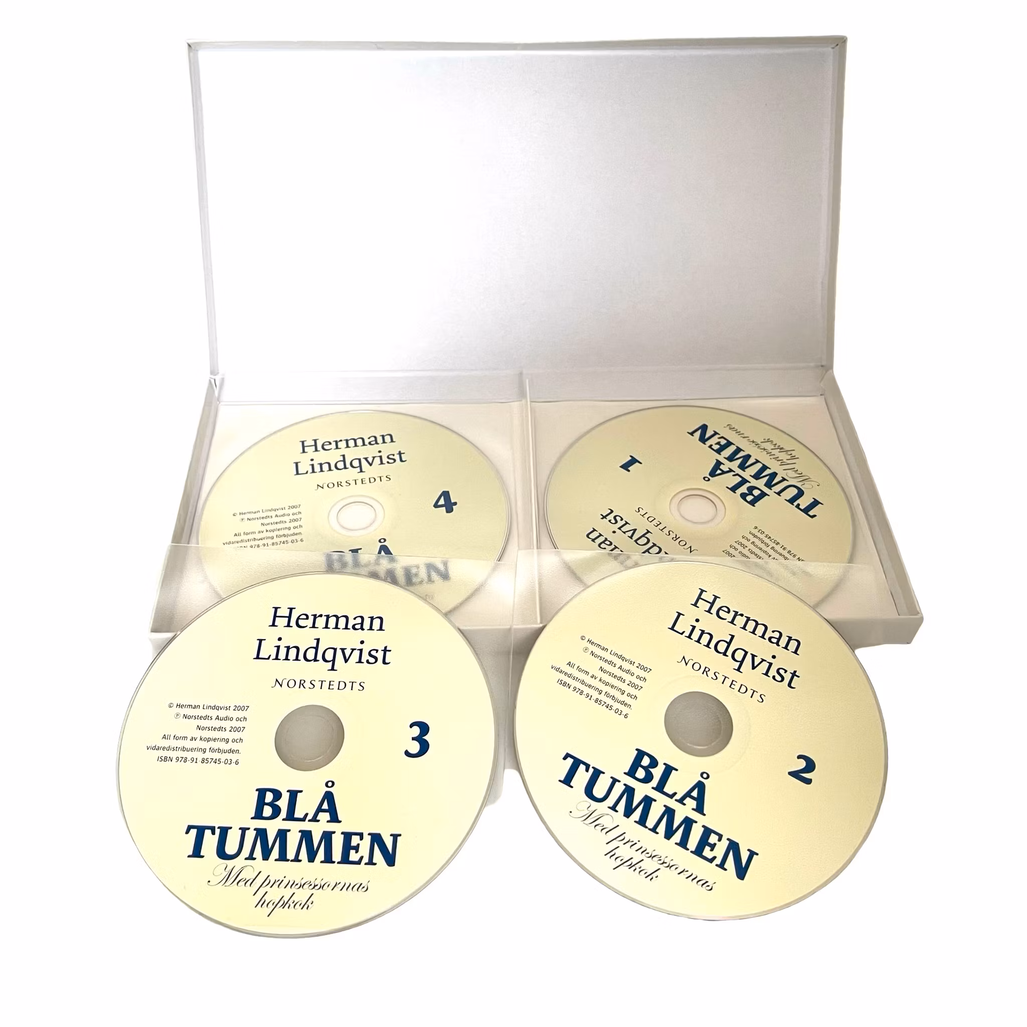 Audiobook na 4 płytach CD, Herman Lindqvist czyta Blue Thumb 14,50 € Dodaj do koszyka Informacja Ljudbok på 4 st. CD, Herman Lindqvist Läser Blå Tummen Med Prinsessornas Hopkok Kåserier