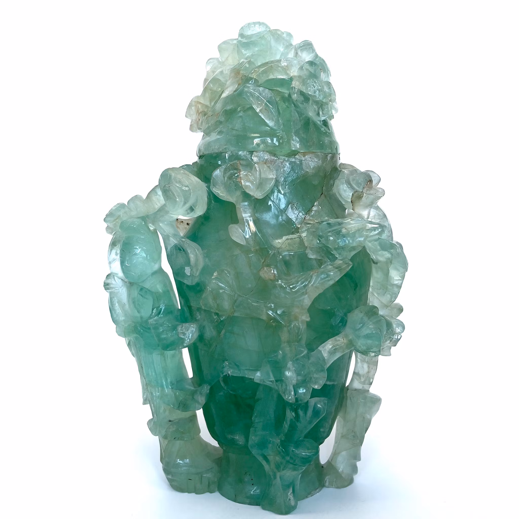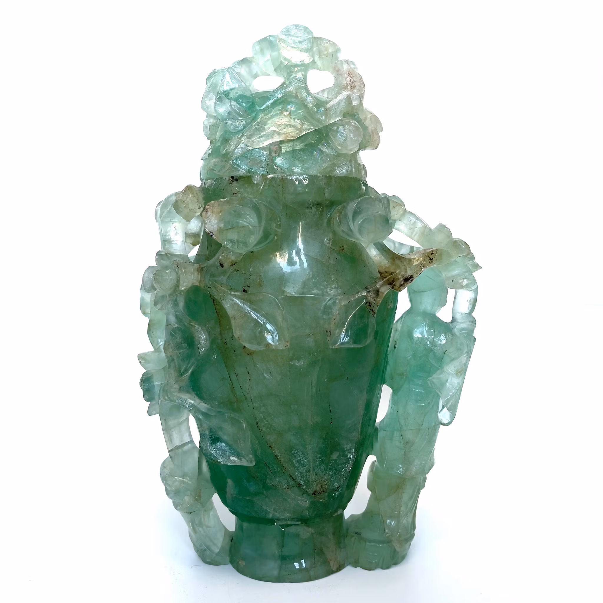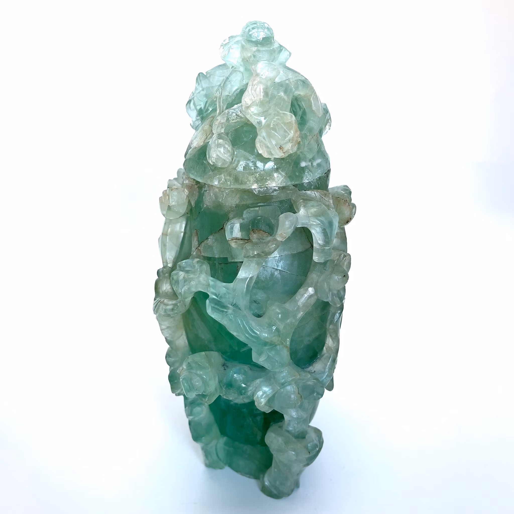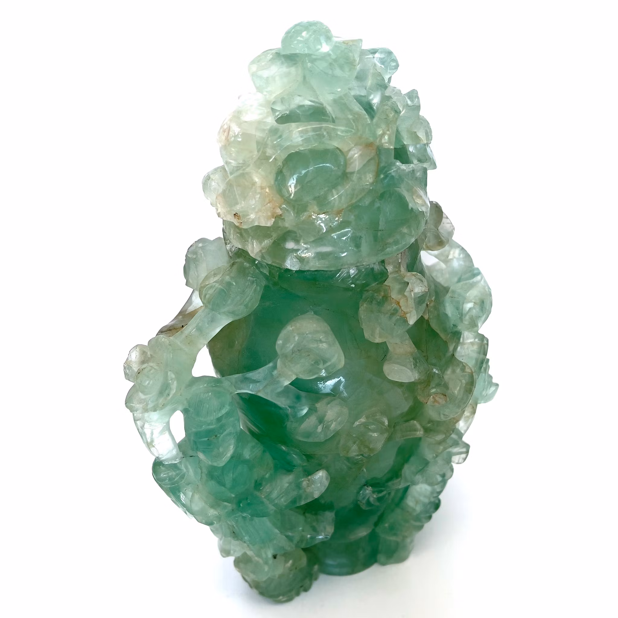 Vas med lock, fluorit, Skuren dekor av växtlighet