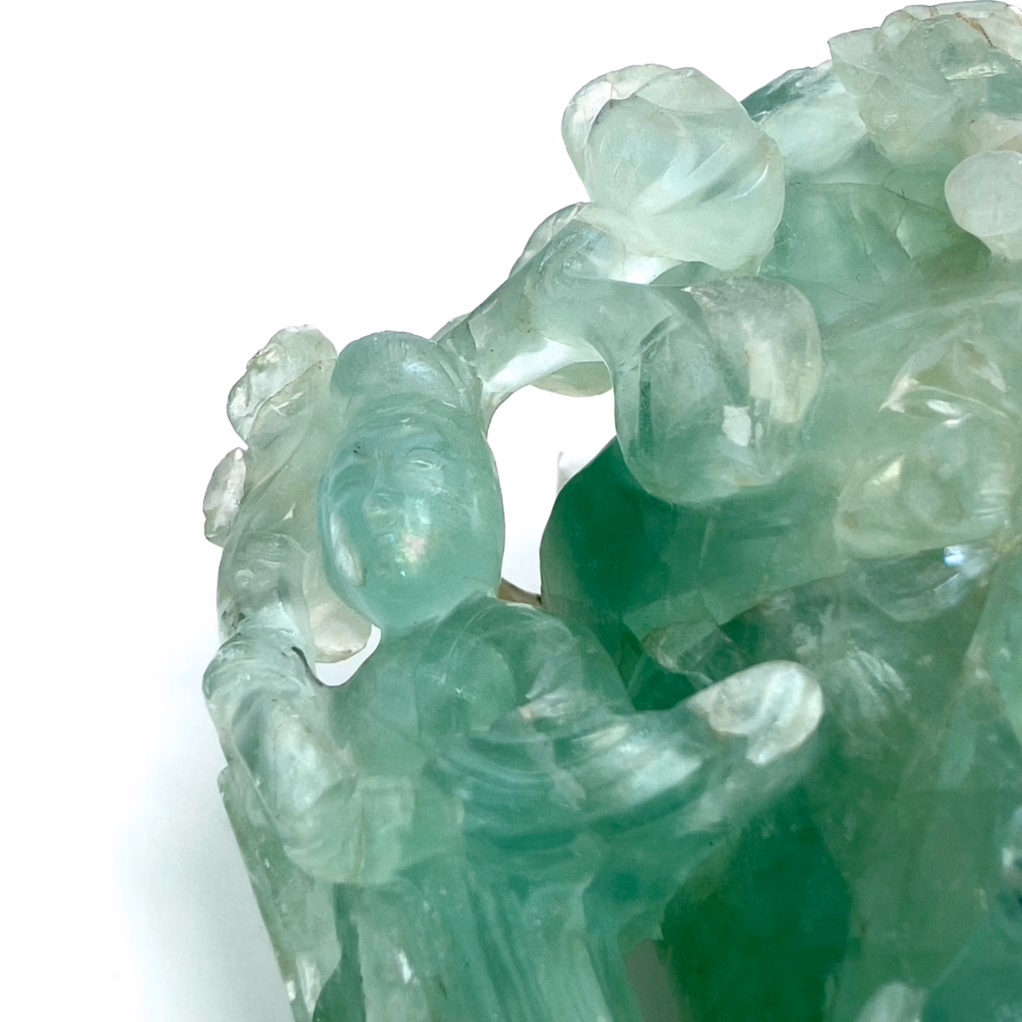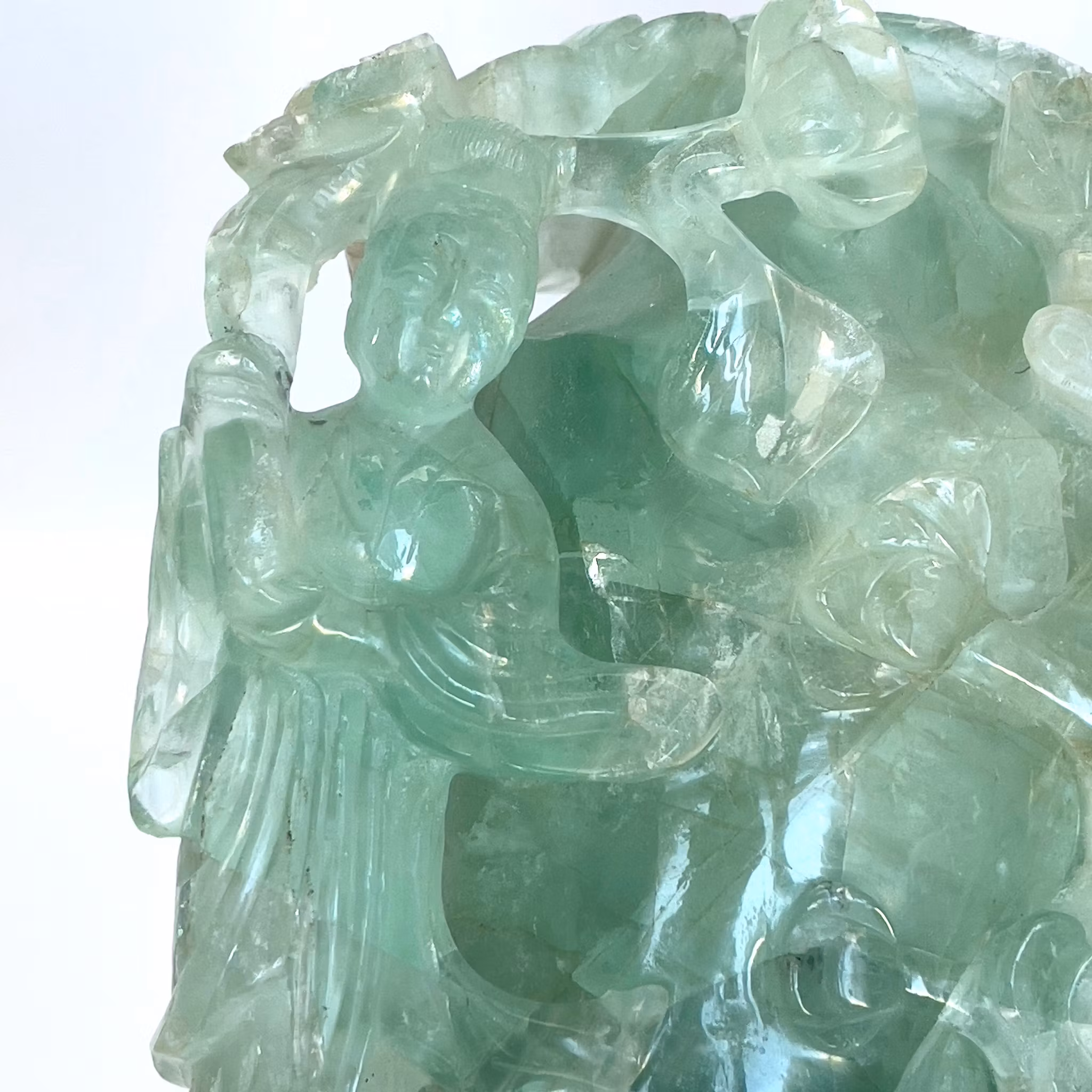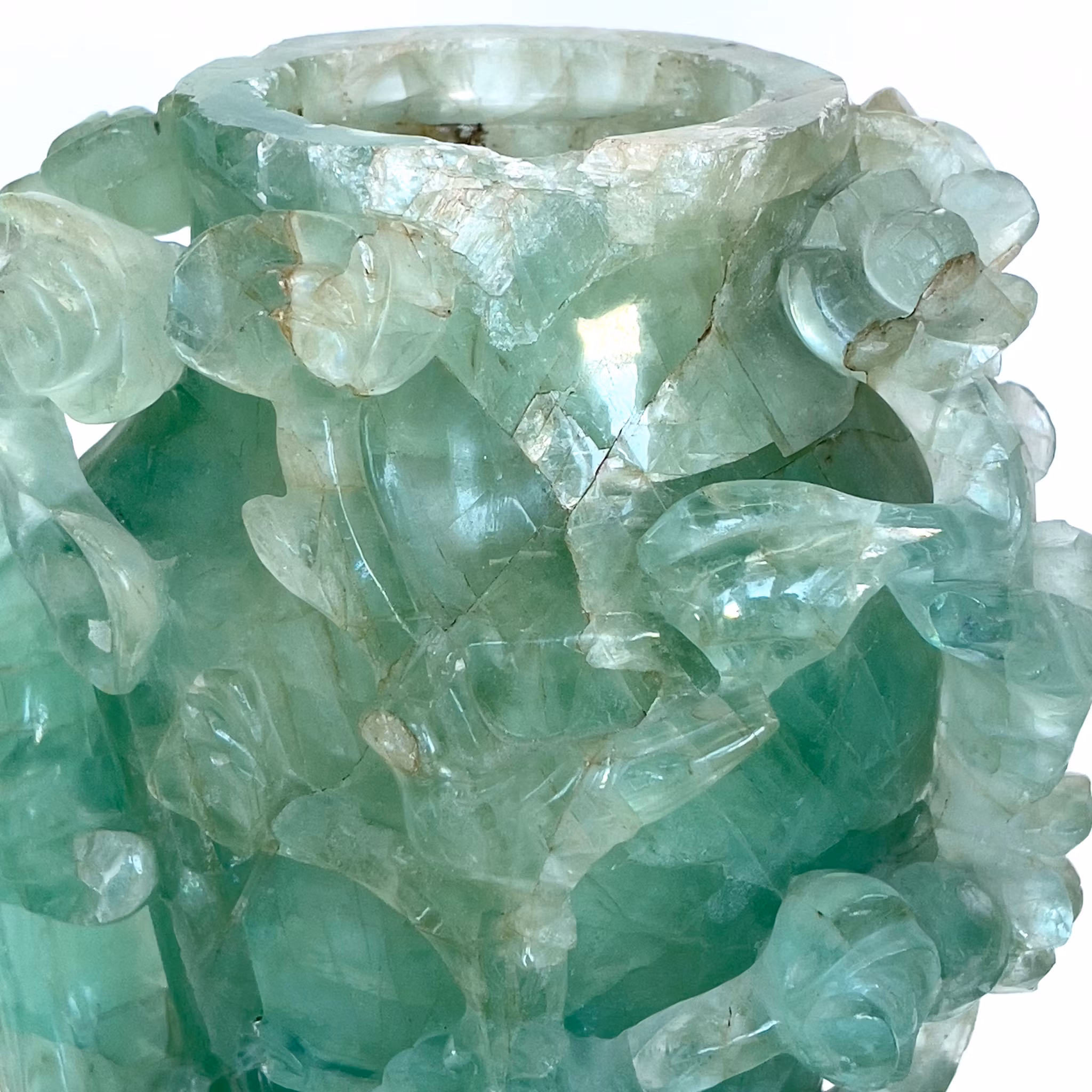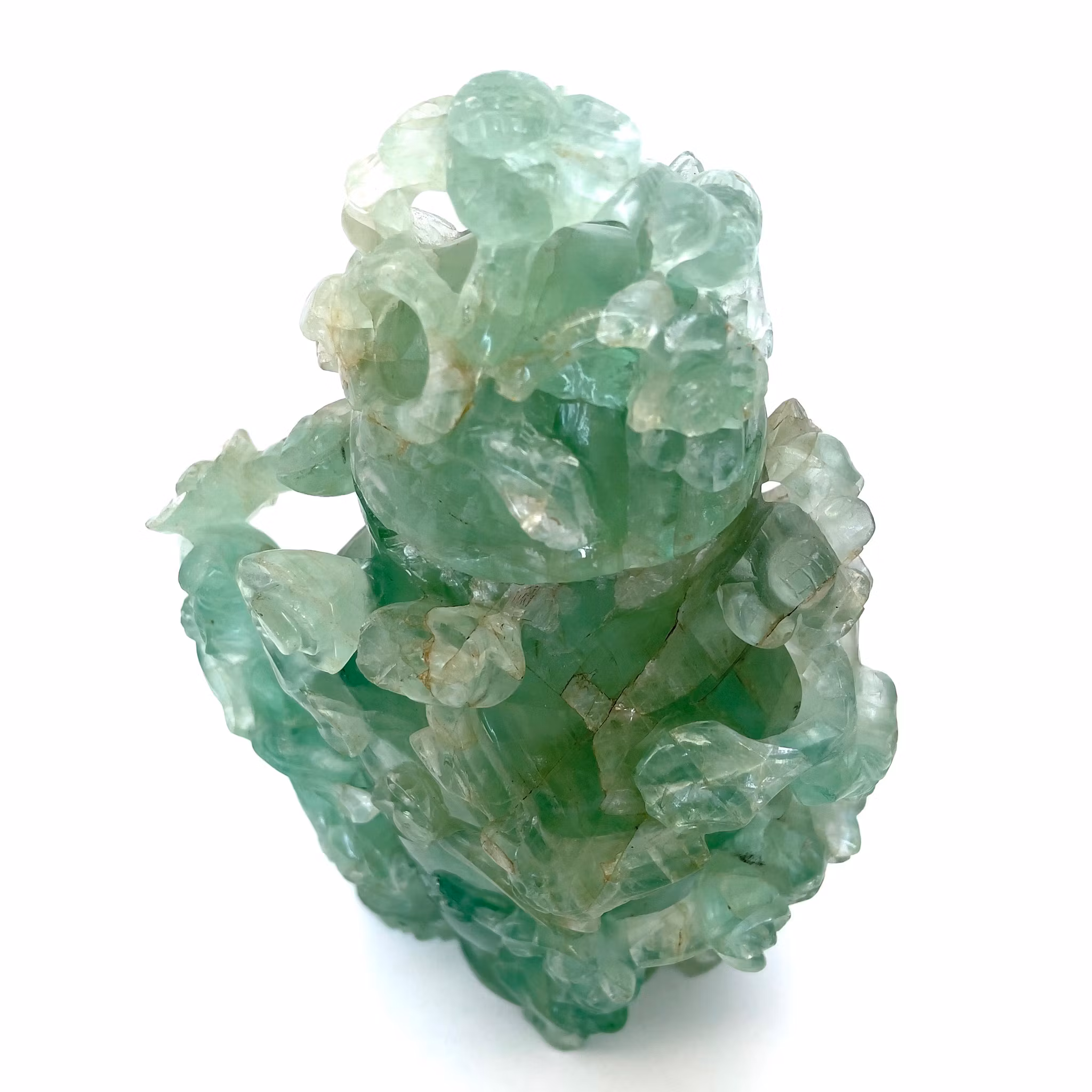 Vas med lock, fluorit, Skuren dekor av växtlighet