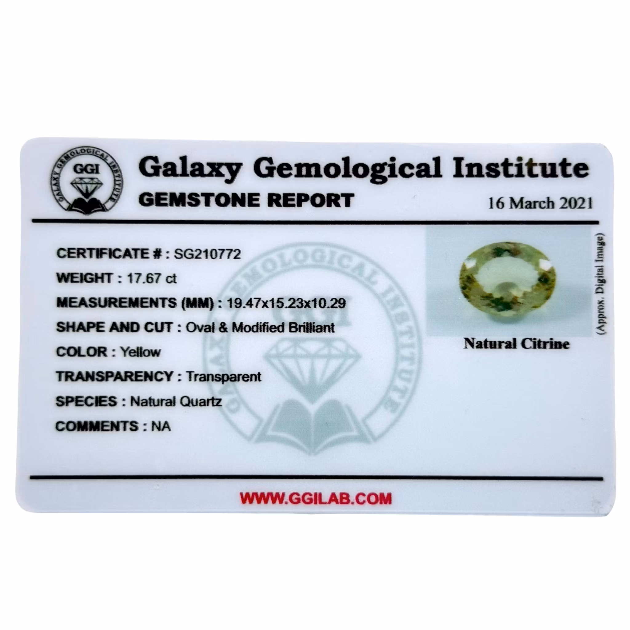17.67 Karat naturlig obehandlad Citrin med certifikat
