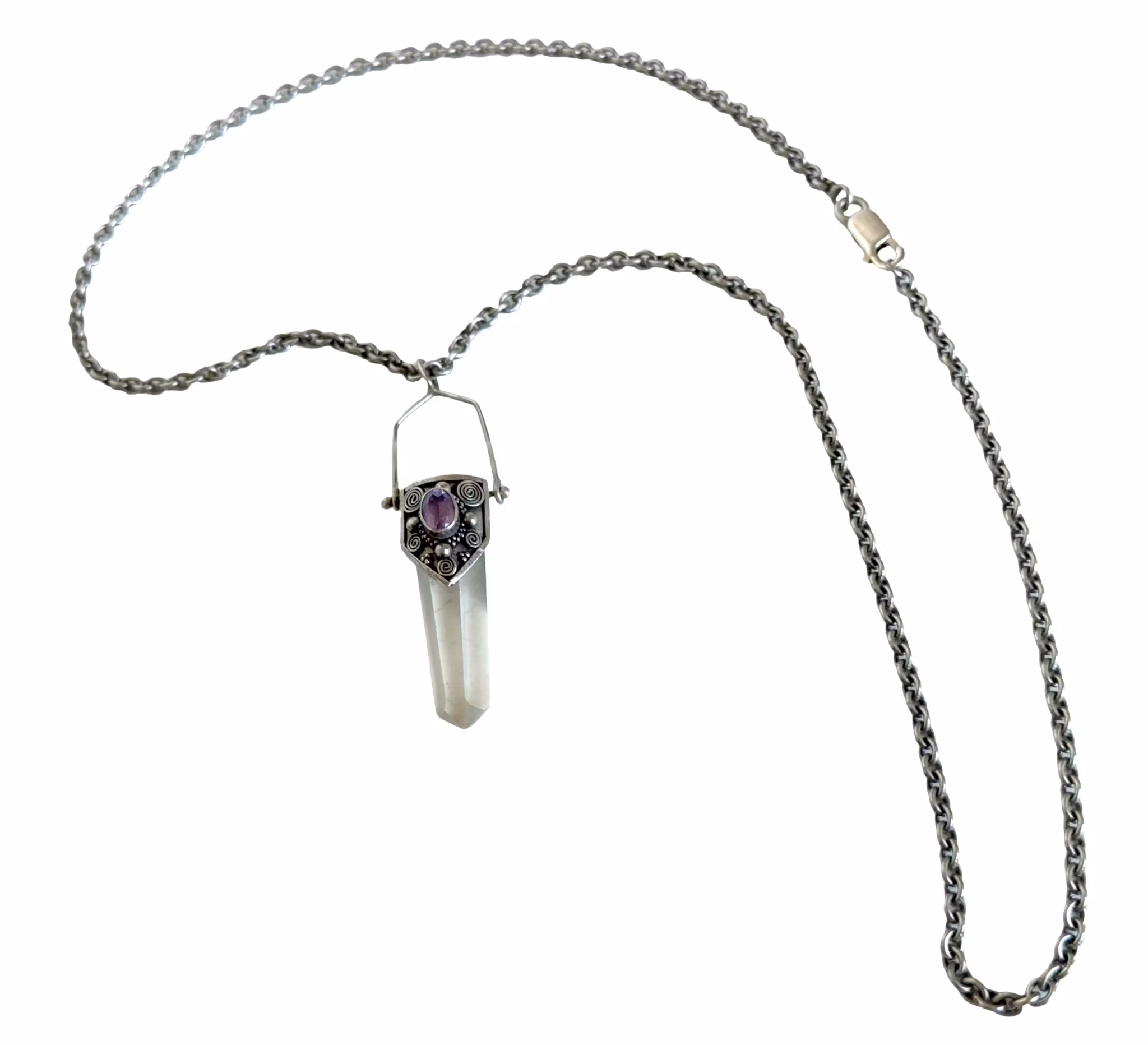 Vintage Halsband med Ametist och Bergkristall i 925 sterling silver