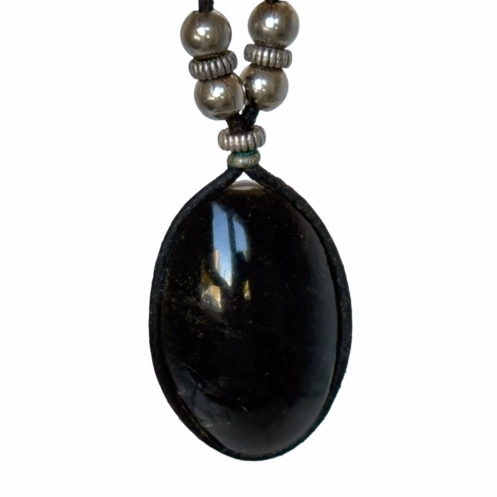 Naszyjnik z wisiorkiem z obsydianu 350 kr Dodaj do koszyka Informacja Vintage Obsidian Hängsmycken halsbandHänge: ca 48x32 mm, Totalvikt: ca 31 gram, Totallängd: ca 60 cm