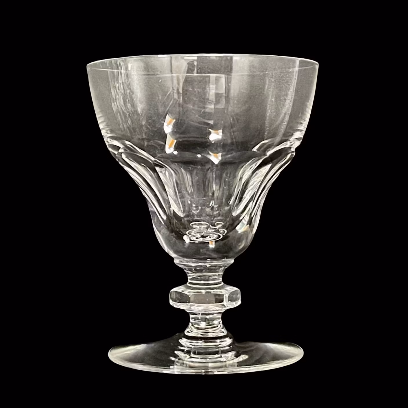 Ett elegant set med 8 st mindre kristallglas, Avsedda för dessertvin, likör eller sherry. Glasen har en vackert fasettslipad kupa, oktagonal knopp på stammen och bred fot, vilket ger både stabilitet och ljusreflektion.