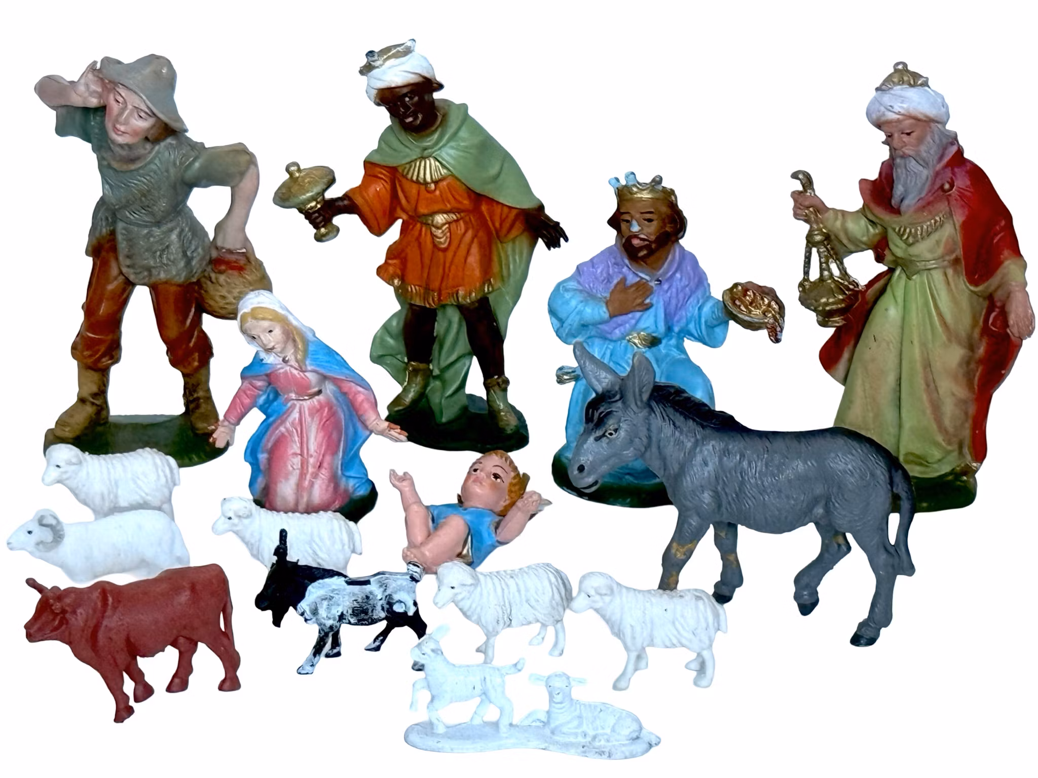 Zabytkowe figurki do szopki bożonarodzeniowej, zestaw plastikowy $87.45 Dodaj do koszyka Informacja Vintage Nativity Julkråp Figurer, plast setHöjd: ca 2,5 - 11 cm