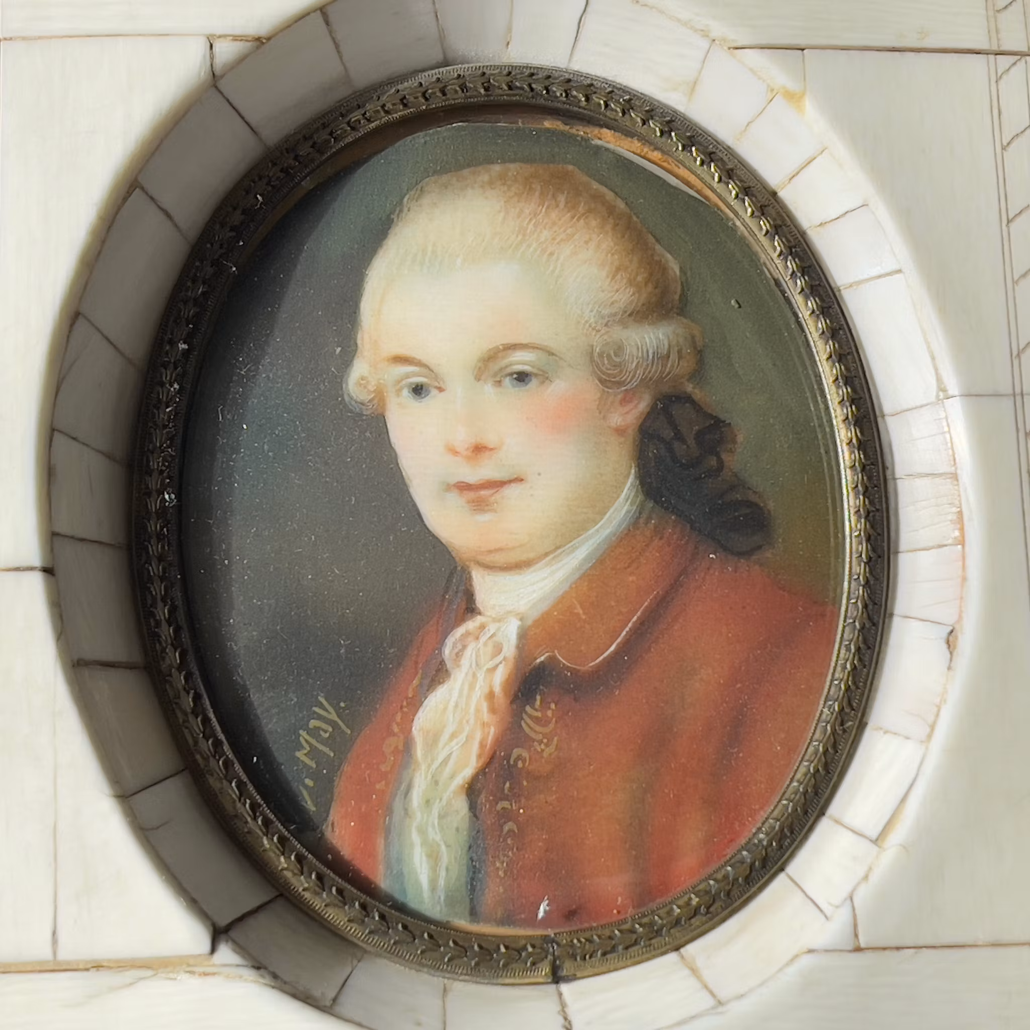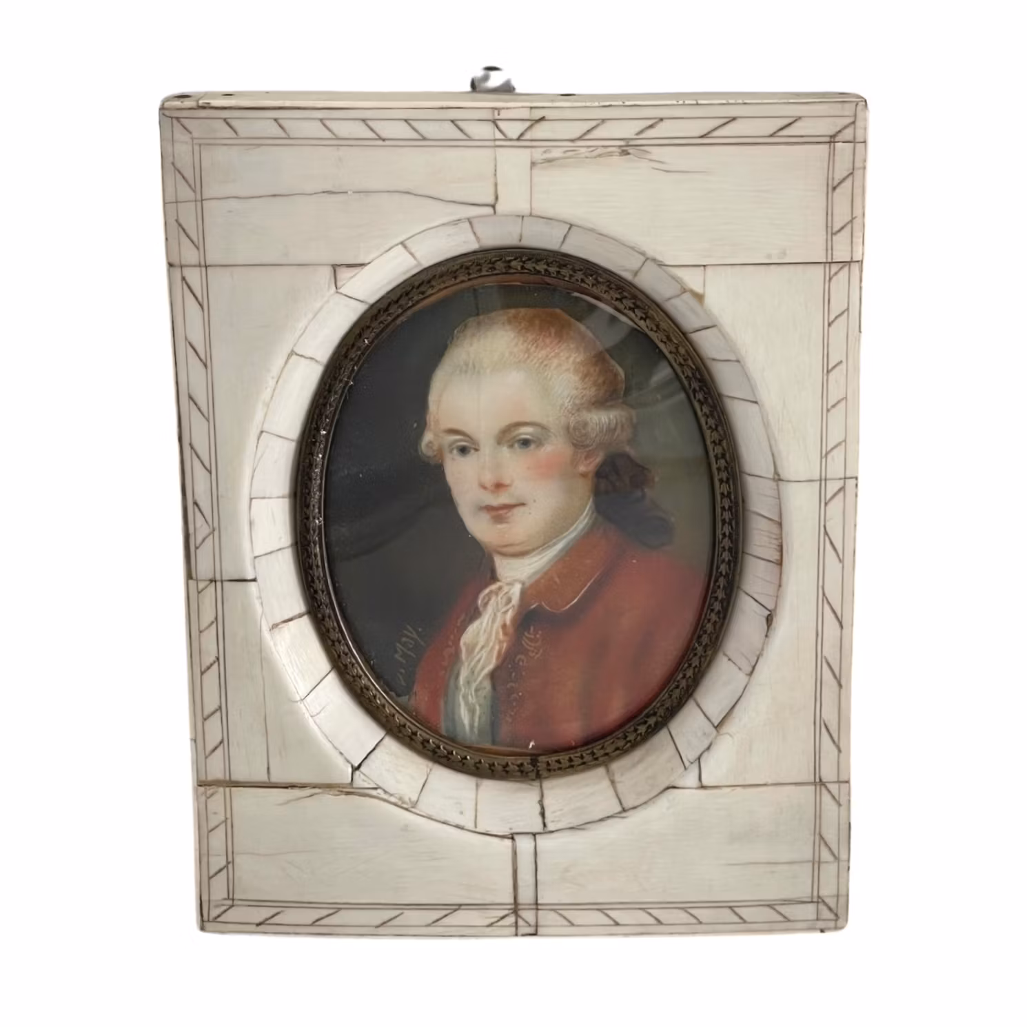 Miniatyrtavla bär signatur, ram av ben 1 800 kr Slutsåld Information Antik Miniatyrtavla bär signatur, ram av ben ca 14 X 11 cm inkl ram.