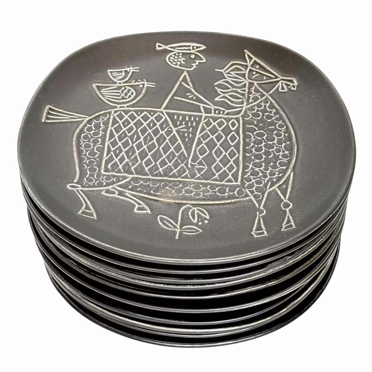 8 st, Stig Lindberg (Sverige 1916-1982). Flintporslin assietter "Piazza", Gustavsberg