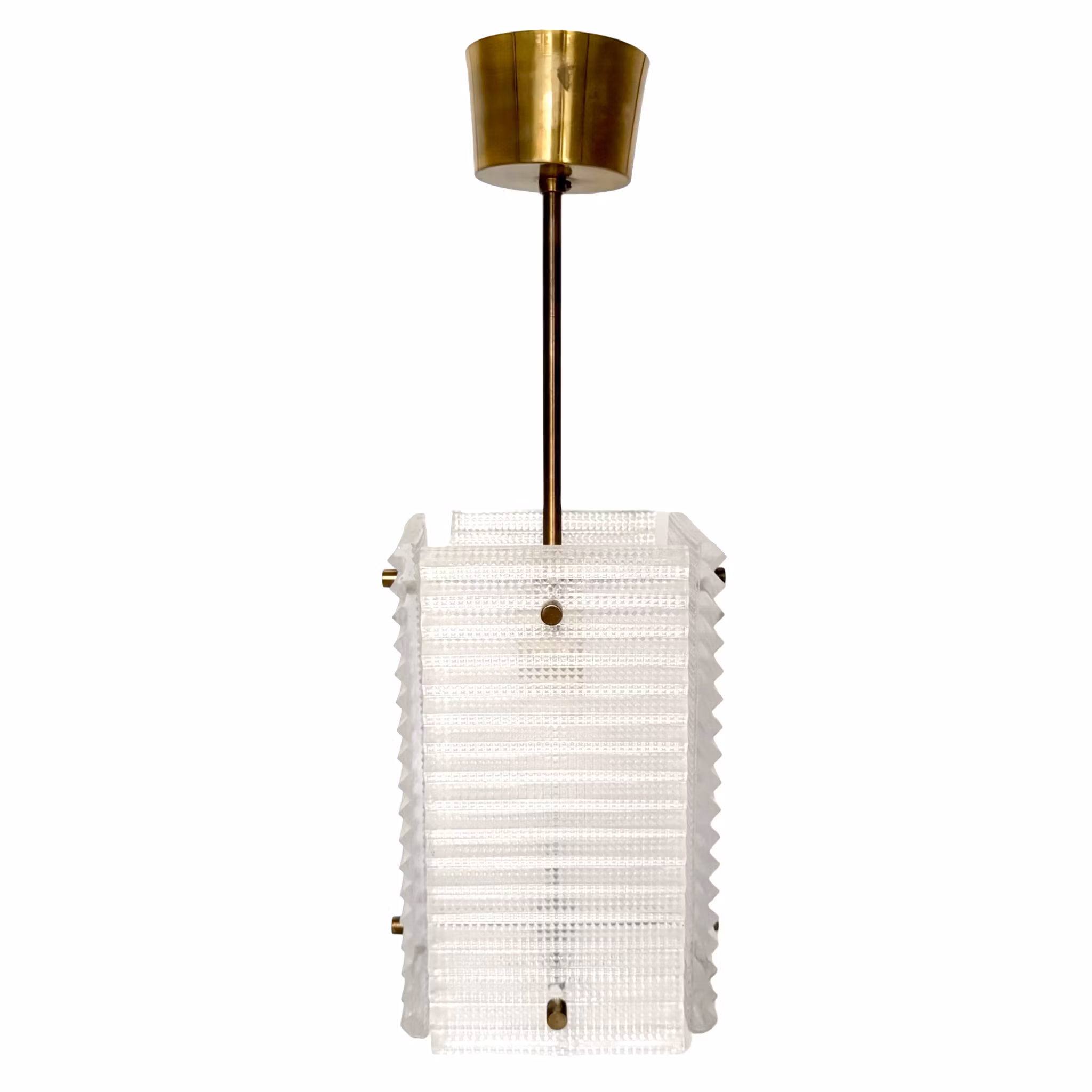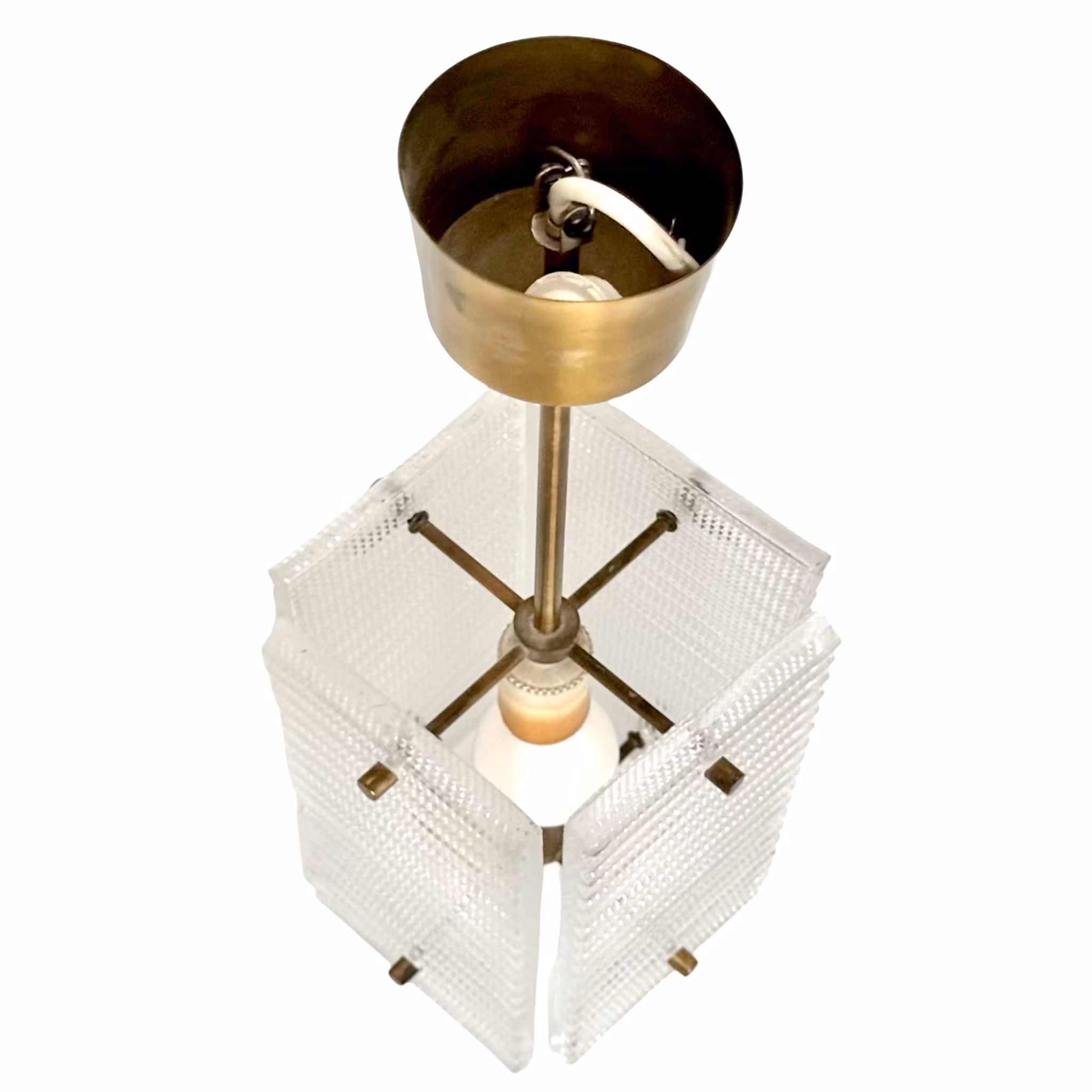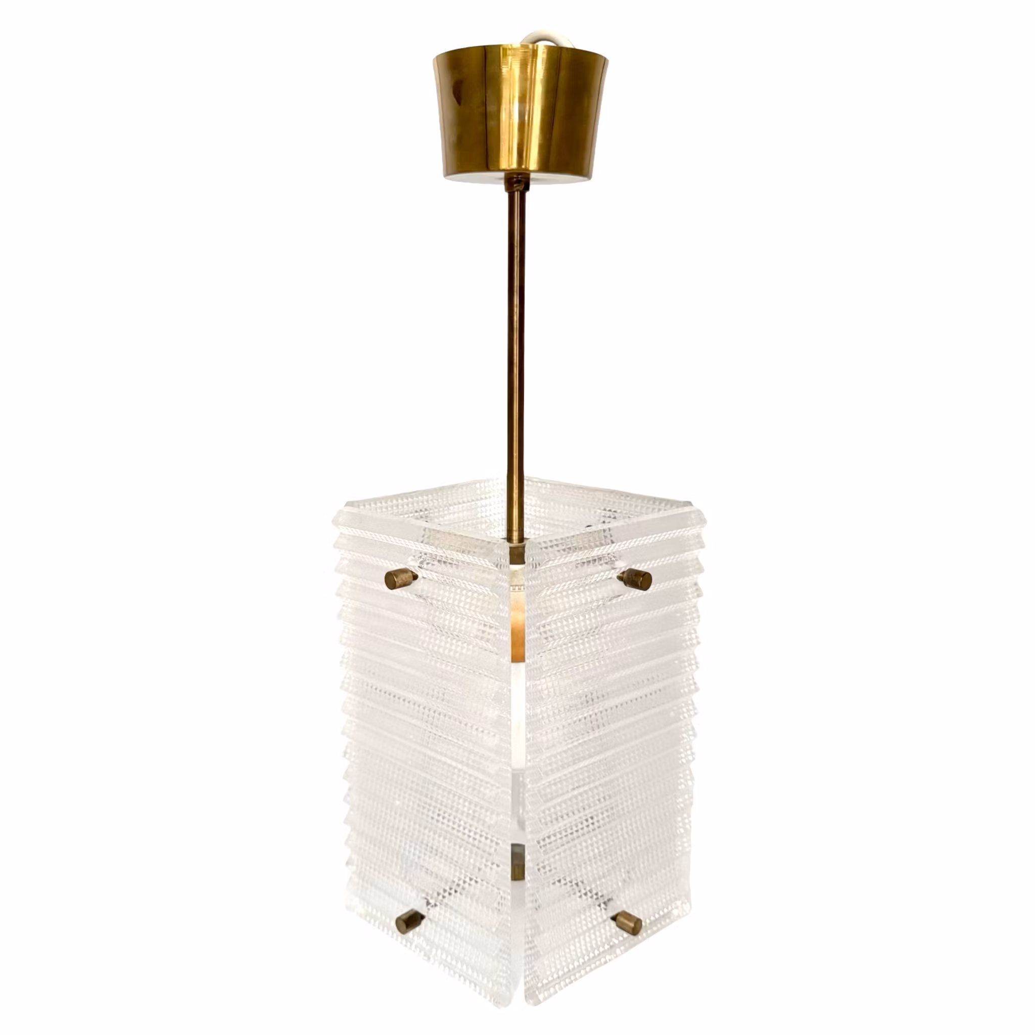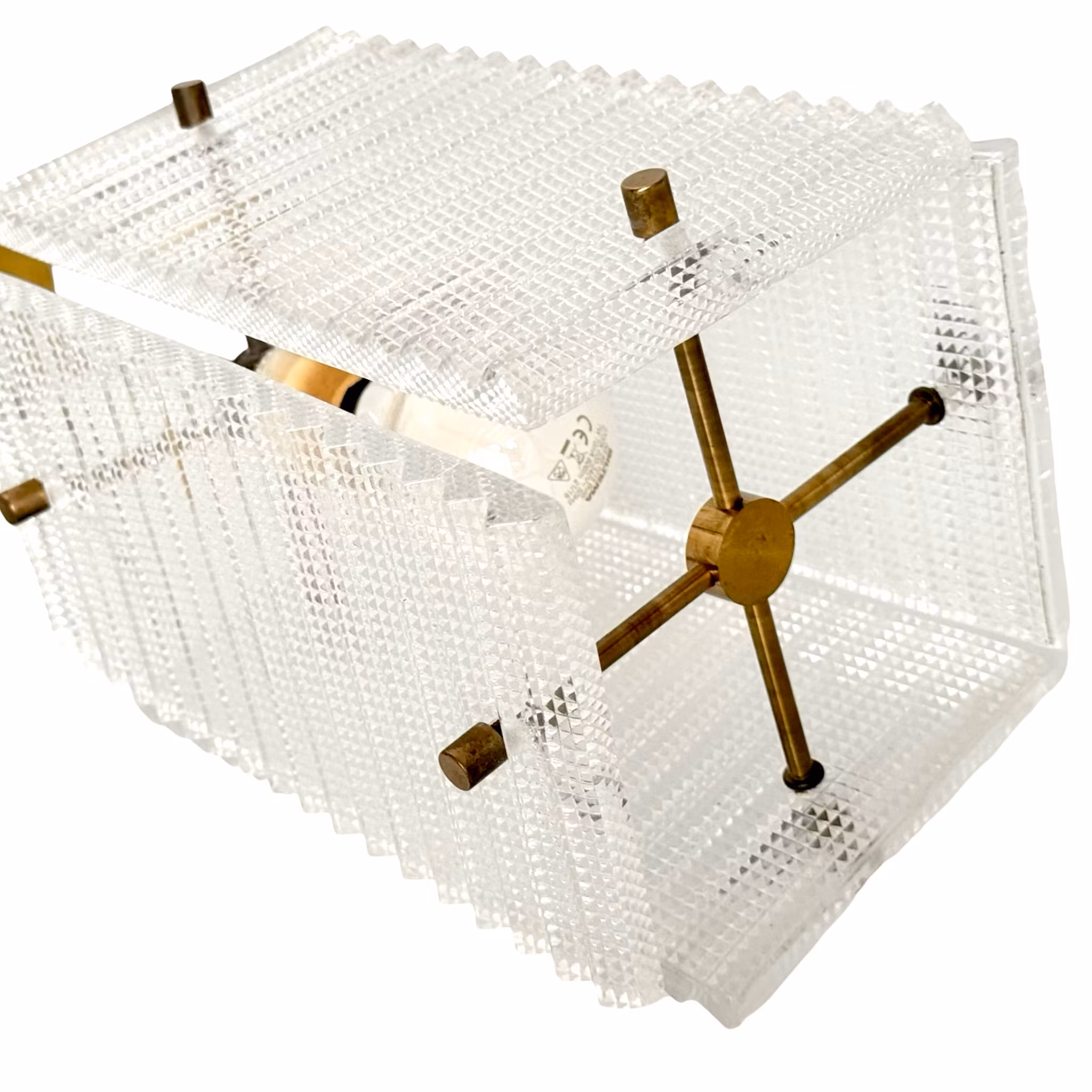 CARL FAGERLUND (Sverige, 1915-2011). Taklampa, glas och mässing, Orrefors, 1900-talets mitt.