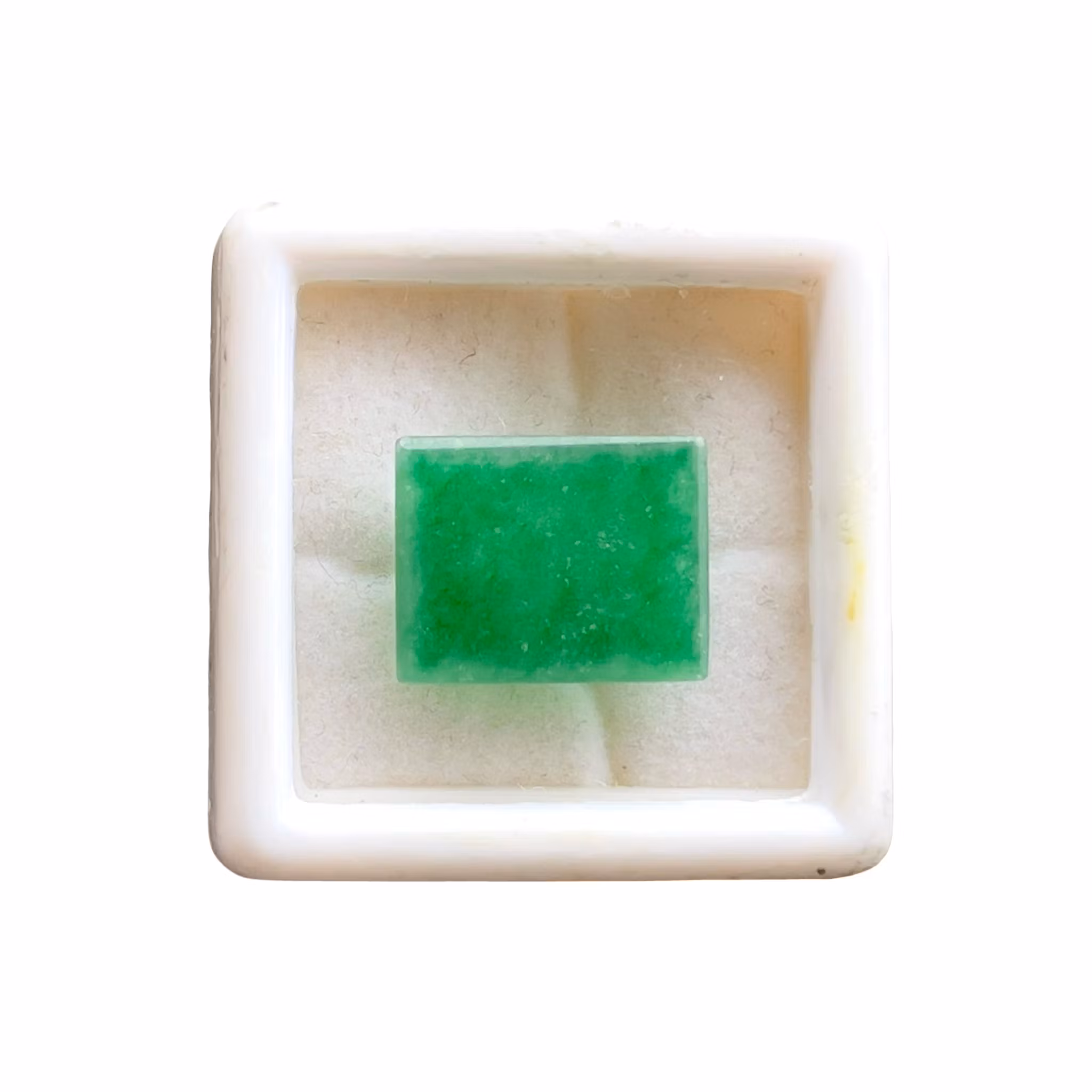 Naturlig smaragd på 4,15 carat i rektangulär form med polerad yta och fasade kanter. Djup grön färg med naturliga inneslutningar, vilket är typiskt för äkta smaragder. Utmärkt för infattning i ring, hänge eller annat exklusivt smycke.