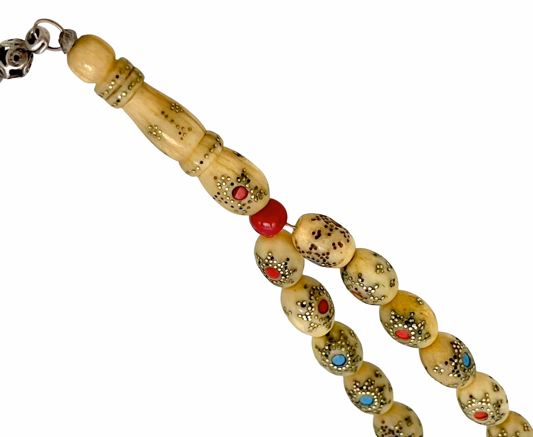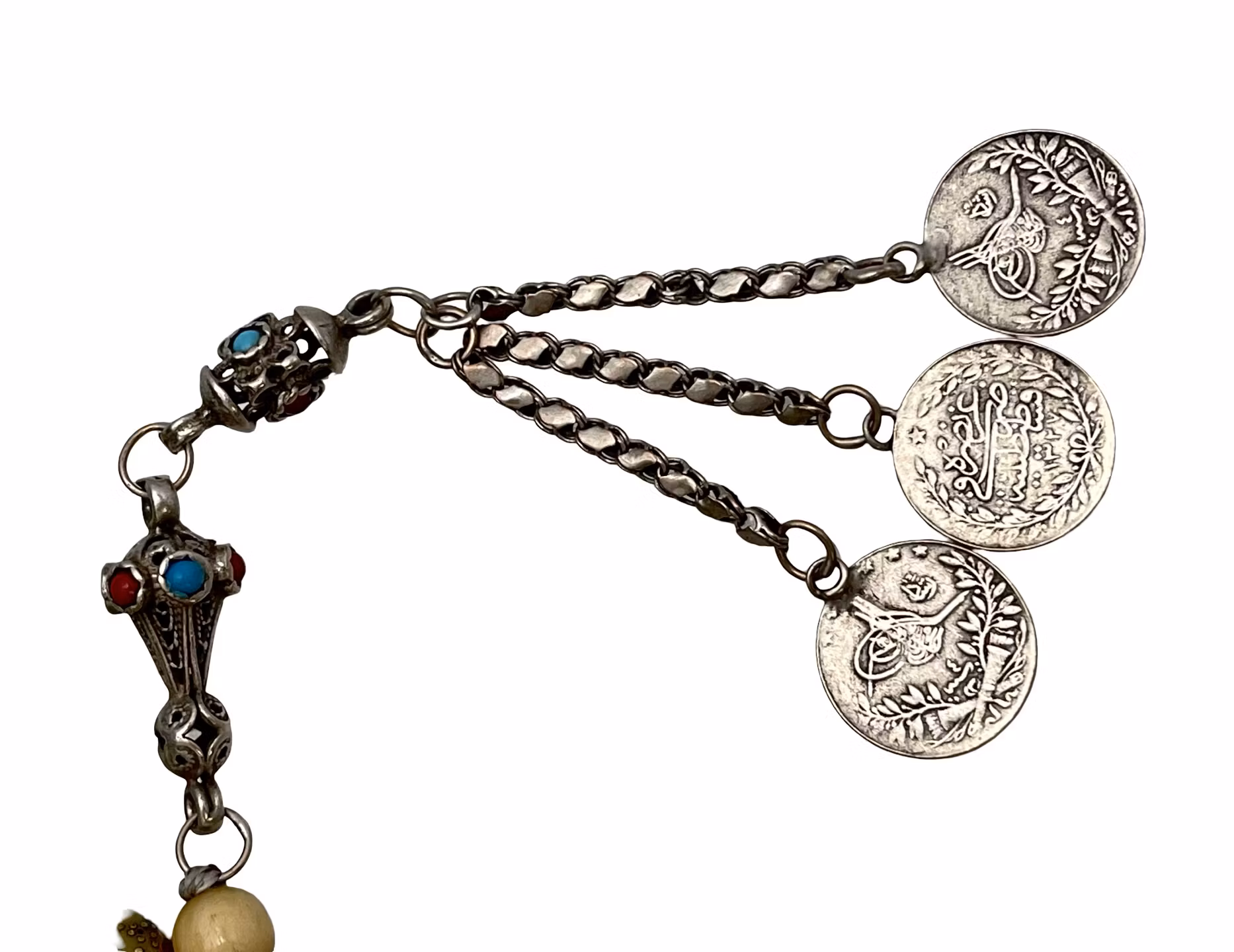 Antikt Osmanskt radband / tespih i ben med silverdetaljer