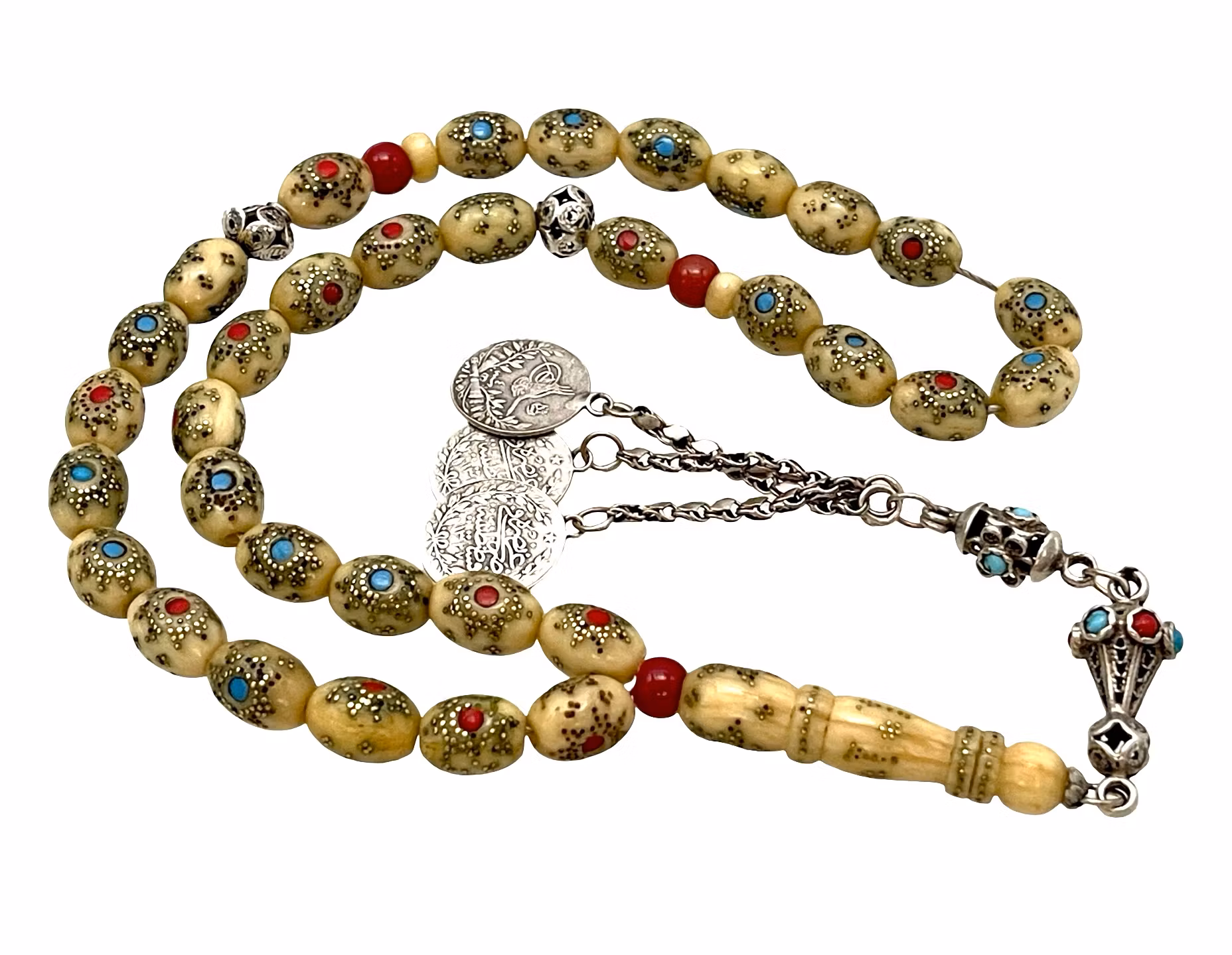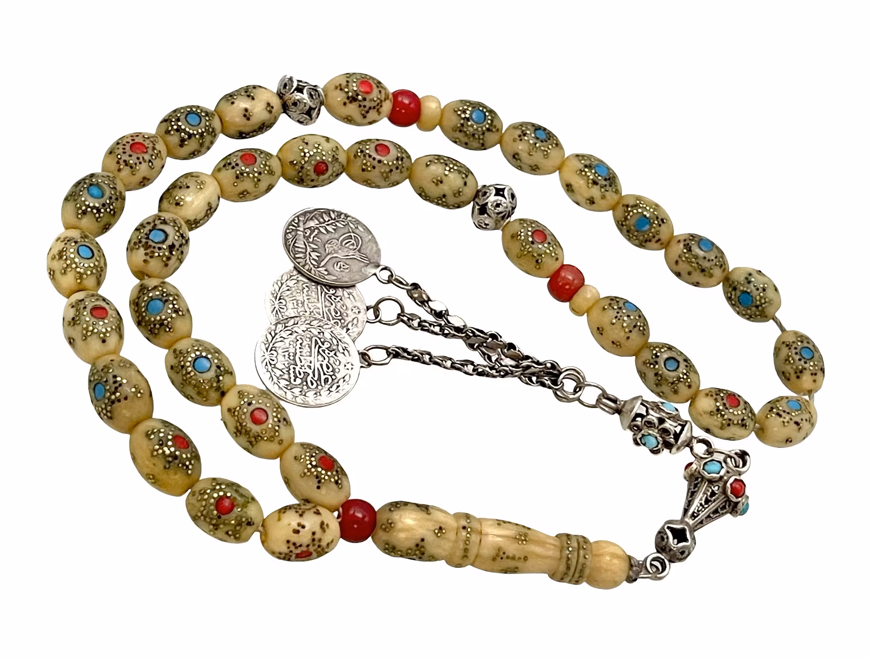 Ett autentiskt osmanskt radband som kombinerar religiös symbolik med konstnärligt hantverk.