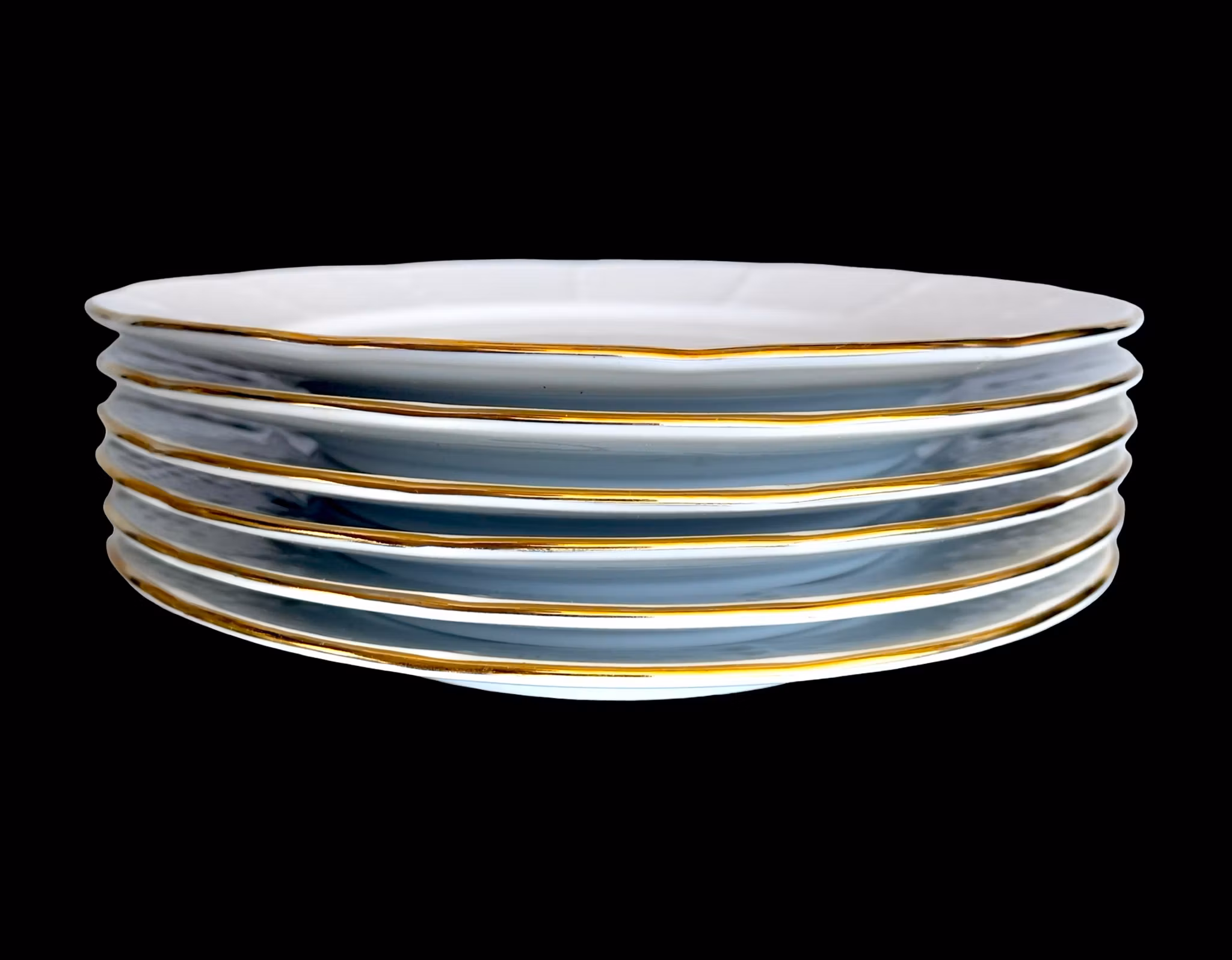 6 st eleganta Thun assietter - Czechoslovakia porslin med guldkant