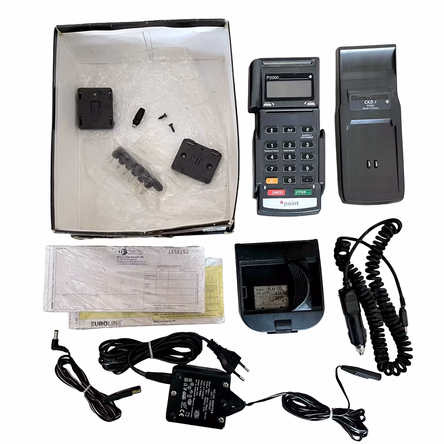 Komplett Point P2000 kortterminal med tillbehör, i begagnat men bra skick.
