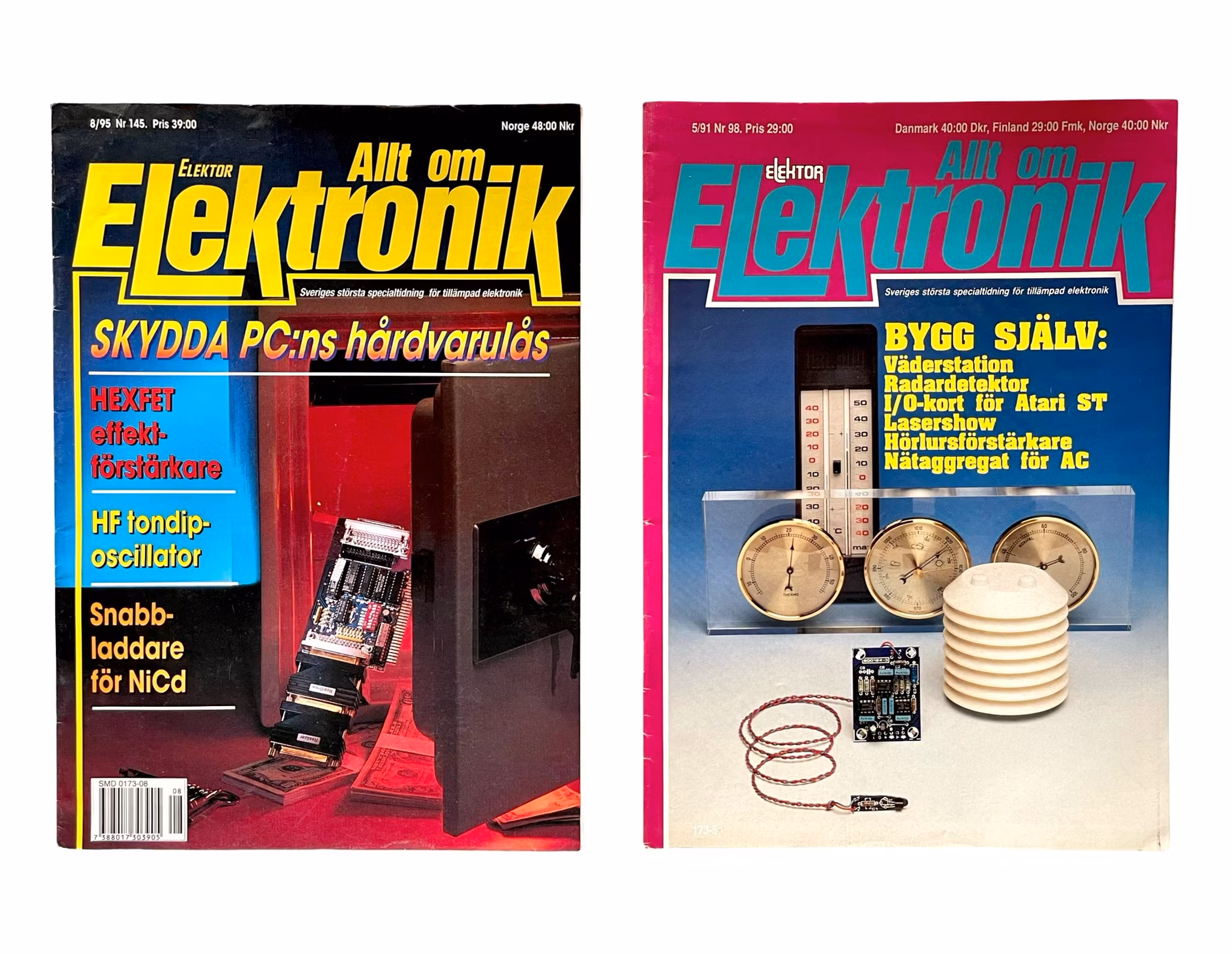 Till salu är en mycket fin och omfattande samling av tidskriften allt om elektronik, utgiven av elektor under början av 1990-talet. Det här är original nummer från den period då hobby elektronik, pc byggen och mätteknik utvecklades som snabbast.