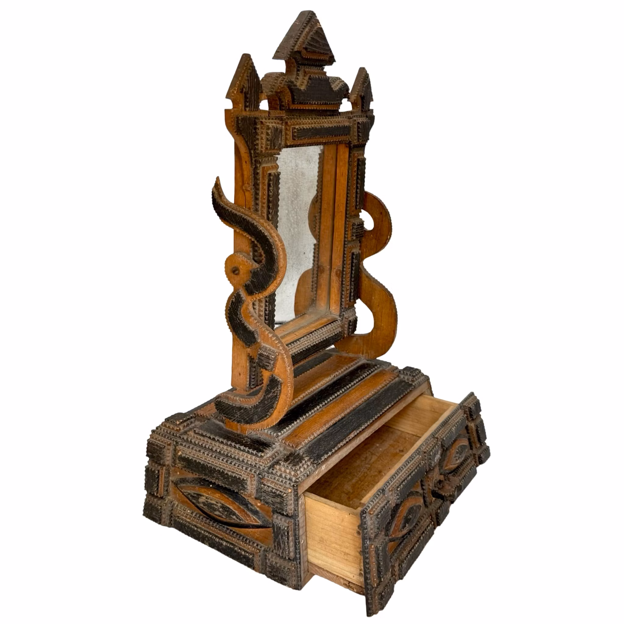 Antik Piggtittare, Spegel med låda