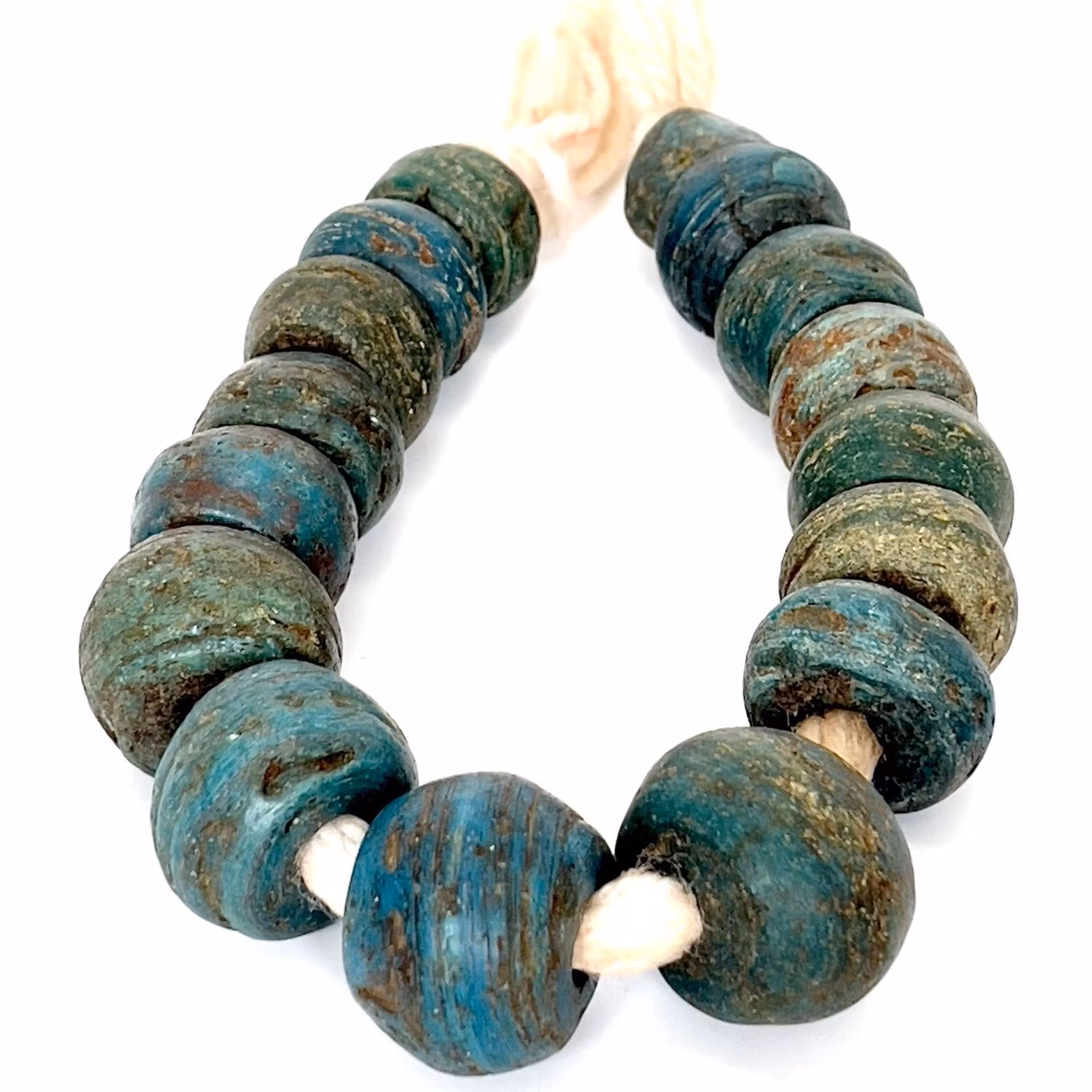Varje pärla är handgjord och uppvisar vacker antik patina, med tydliga spår av ålder och hantverk från antikens Rom.
