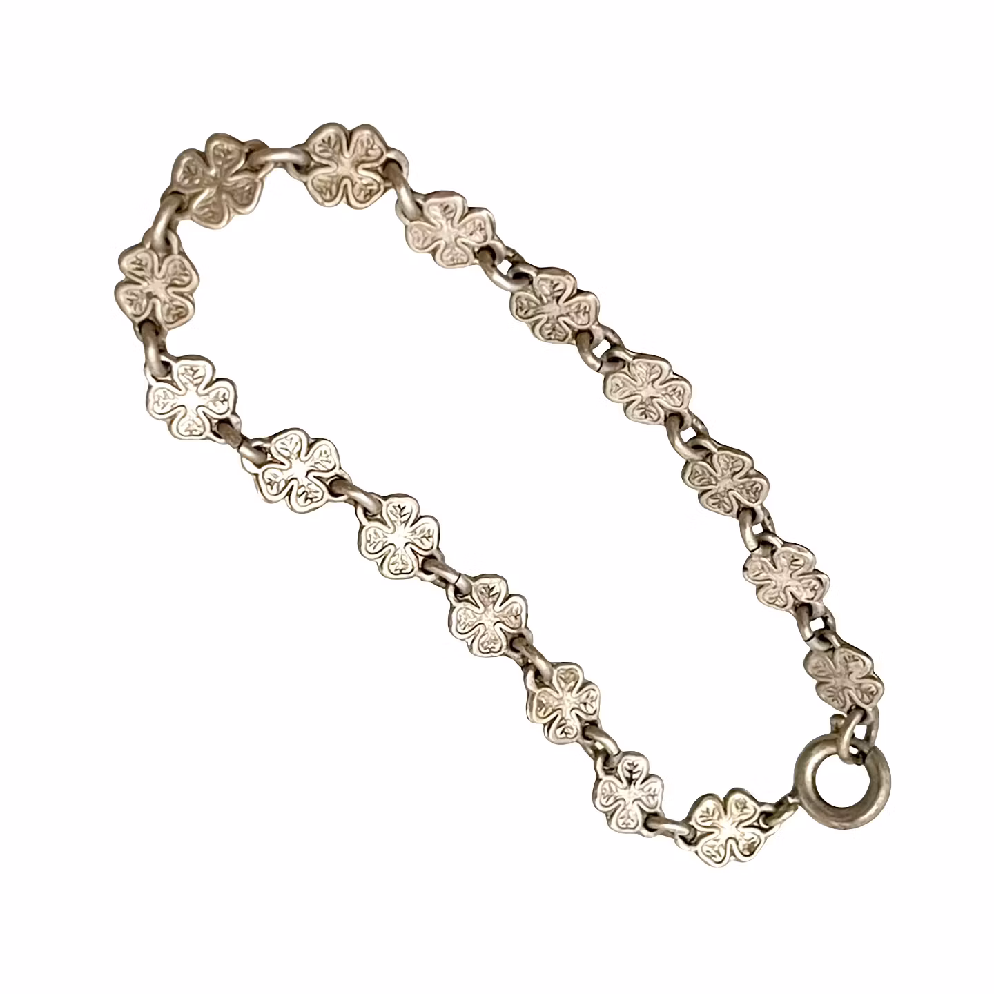 Antikt Barnsmycke - Silverarmband - Fyrklöver design