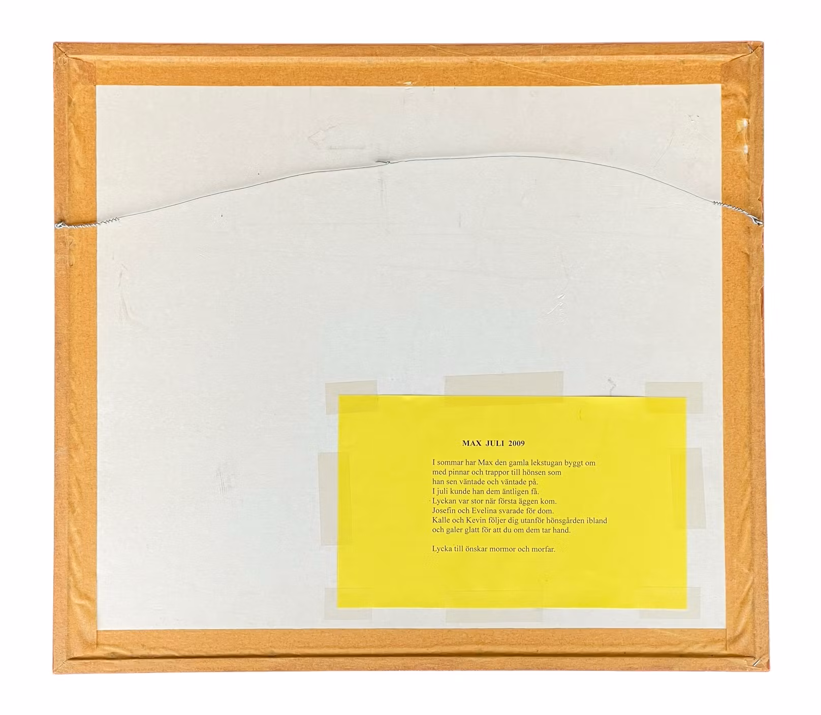 Baksidan har en personlig hälsning daterad "MAX JULI 2009".