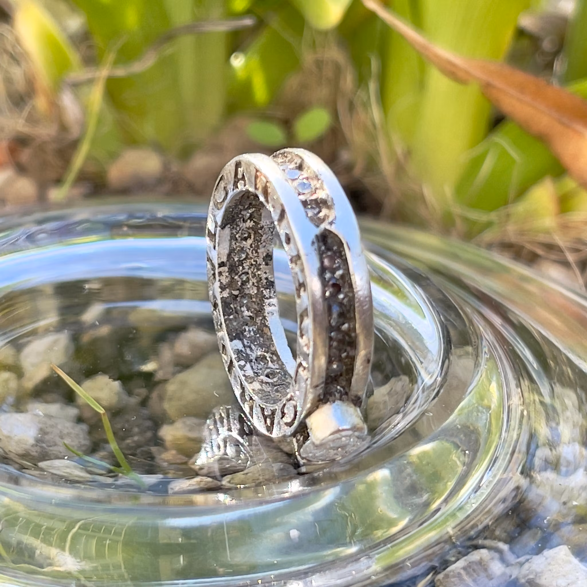 Äkta BVLGARI ring i sterling silver 925 med klassisk graverad design runt hela ringen. Modellen har även små infattade stenar längs sidan. Ringen är tydligt använd och säljs i befintligt skick - Passar som projekt, reservdel eller för den som vill restaurera.
