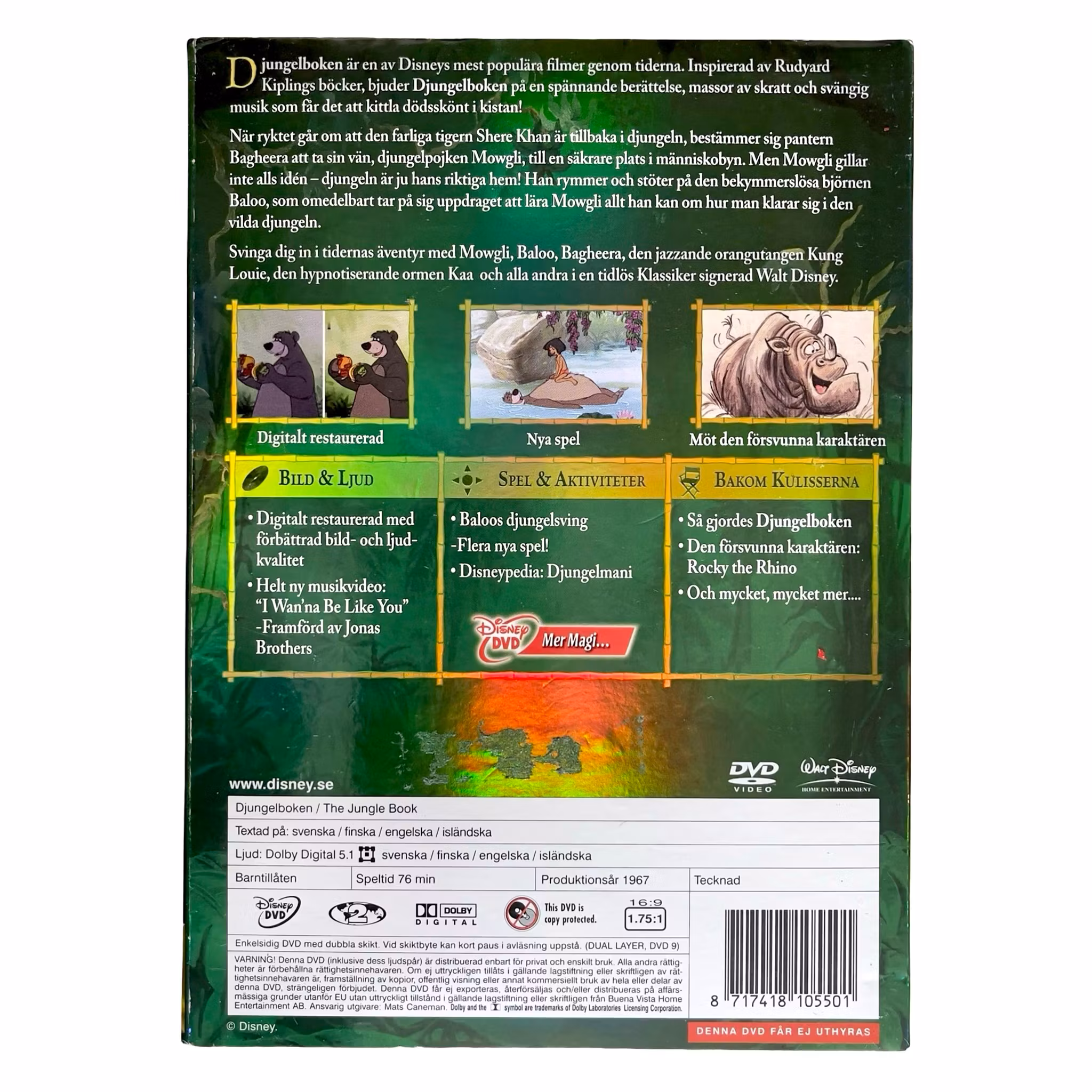 Säljer en fin och eftertraktad svensk DVD utgåva av Walt Disneys klassiker Djungelboken i 40 års jubileums utgåva.