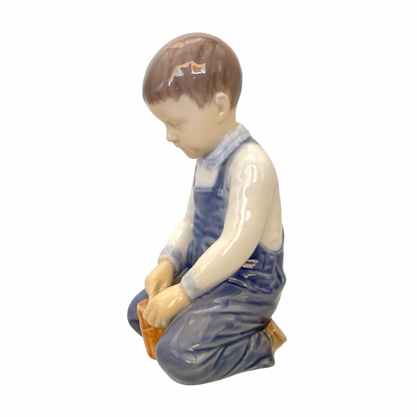 FIGURIN, porslin, pojke med spann och spade, Bing & Gröndahl, nr. 2127, Danmark