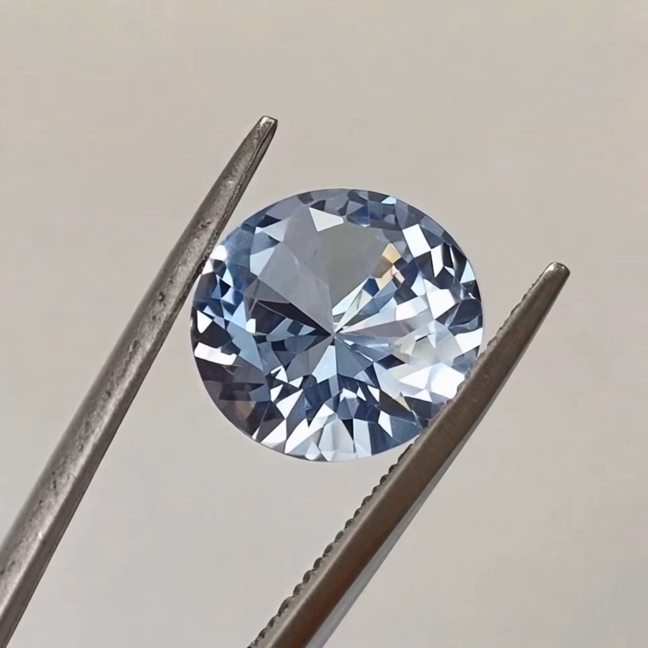 Elegant naturlig ljusblå topas med briljant rund fasett slipning och tydlig lyster.