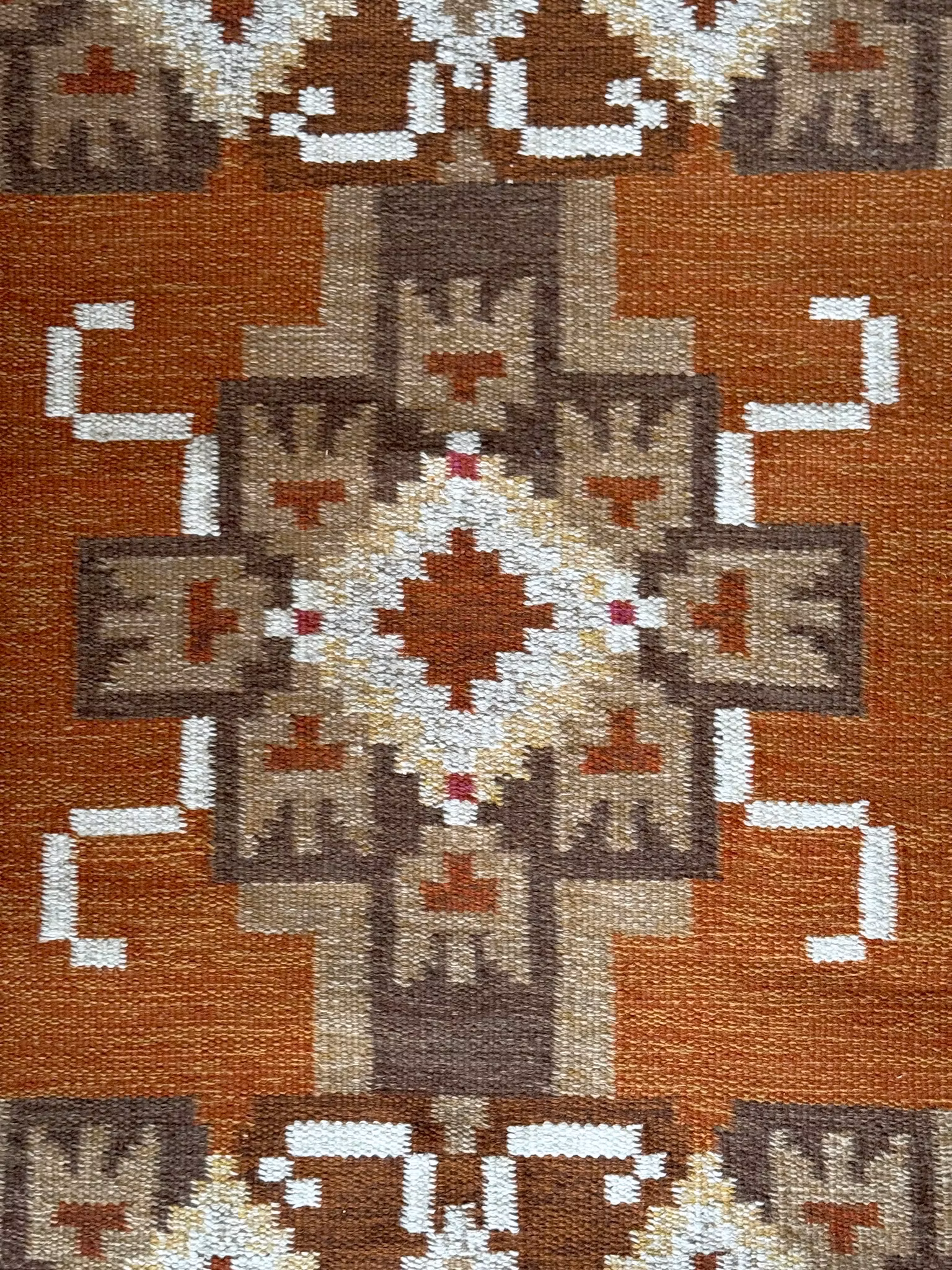 Matta, Rölakan, Design Svaneholm, dekor av geometriskt mönster, signerad SH