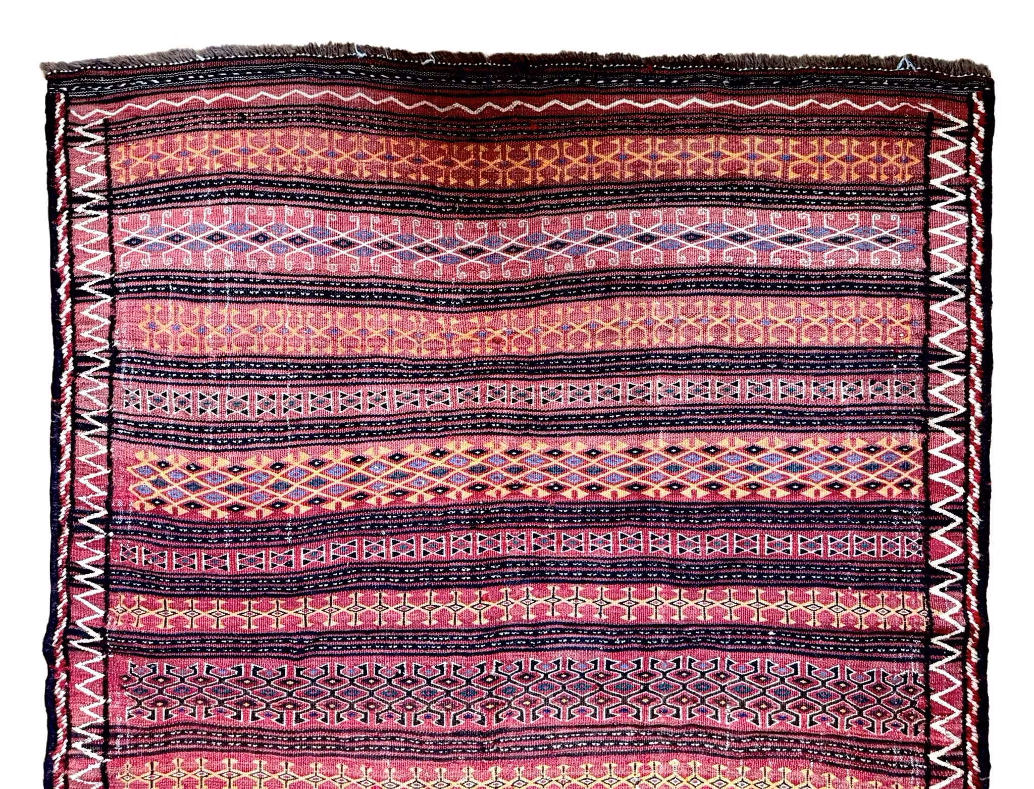 Vacker och sällsynt antik kurdisk matta, handvävd i ull på ull, från tidigt 1900-tal. Mattan är vävd med traditionella geometriska mönster typiska för kurdisk nomadkonst i regionen (Kurdistan).