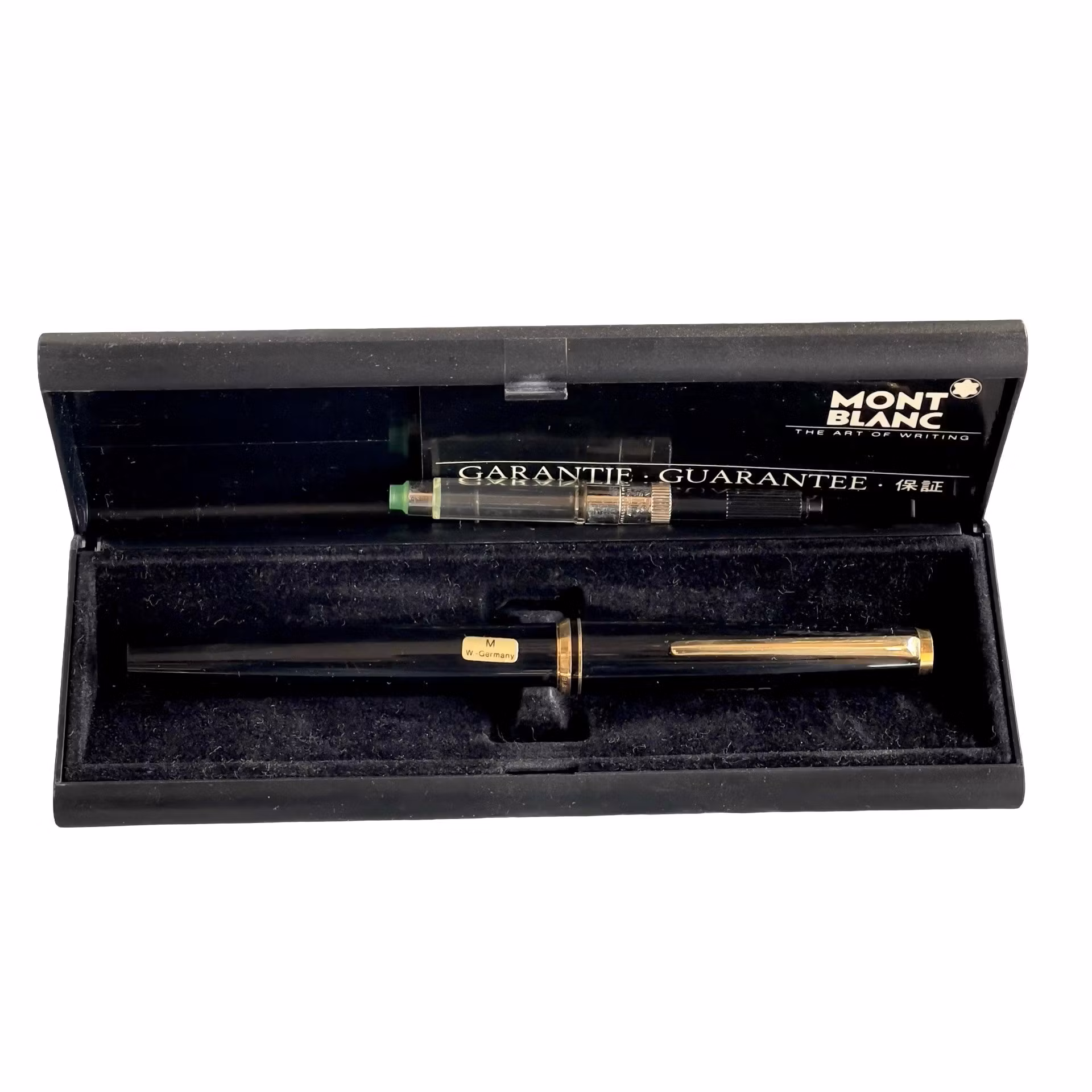 Elegant och tidlös Montblanc reservoar penna i svart högblank resin med exklusiva gulddetaljer. En klassisk premium penna som kombinerar tysk precision med ikonisk design. Perfekt för samlare, present eller daglig användning på hög nivå.