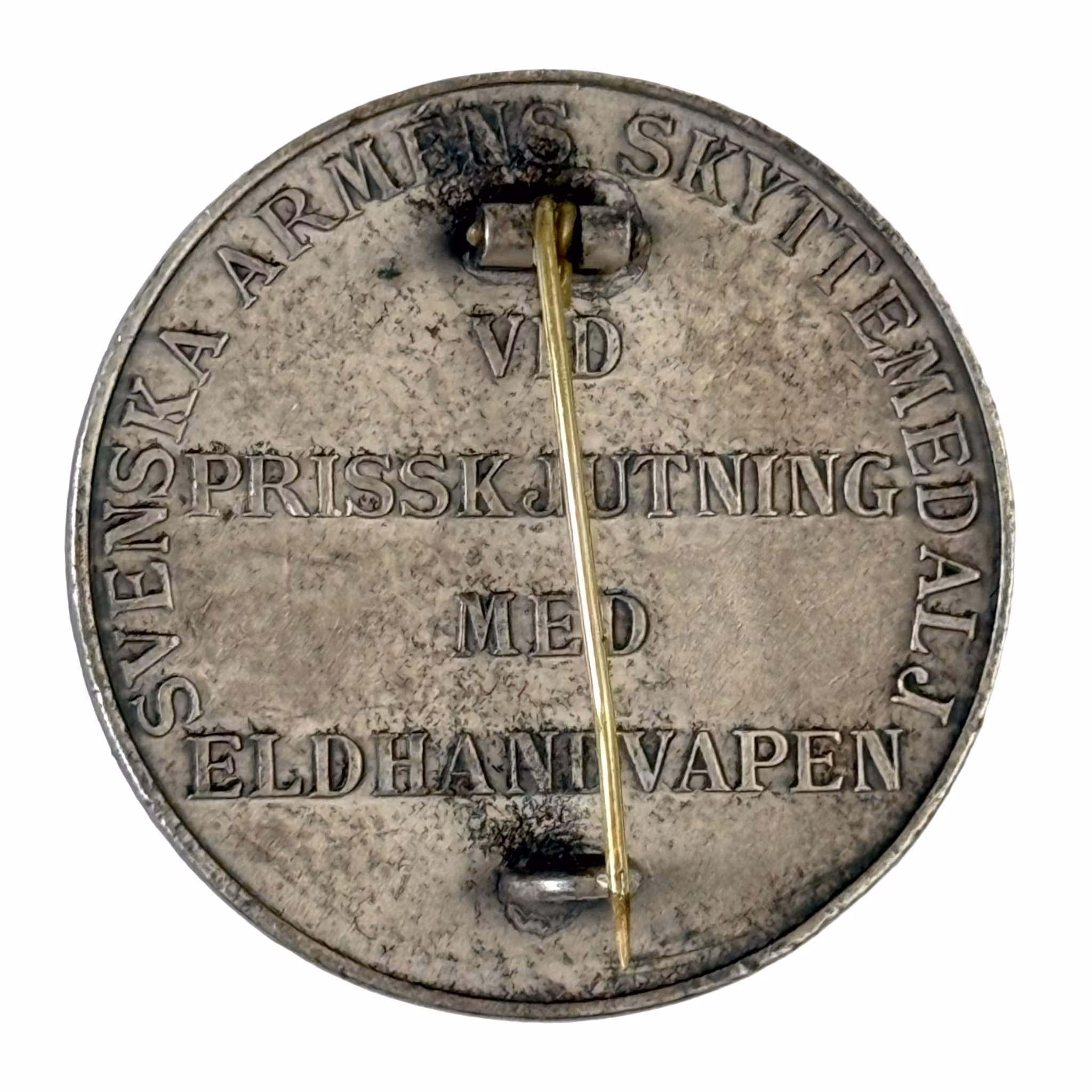 Svenska Arméns skyttemedalj i silver 350 kr Lägg i korgen Information Svenska Arméns skyttemedalj i silverDiameter: ca 35 mm, Vikt: ca 17,8 g.