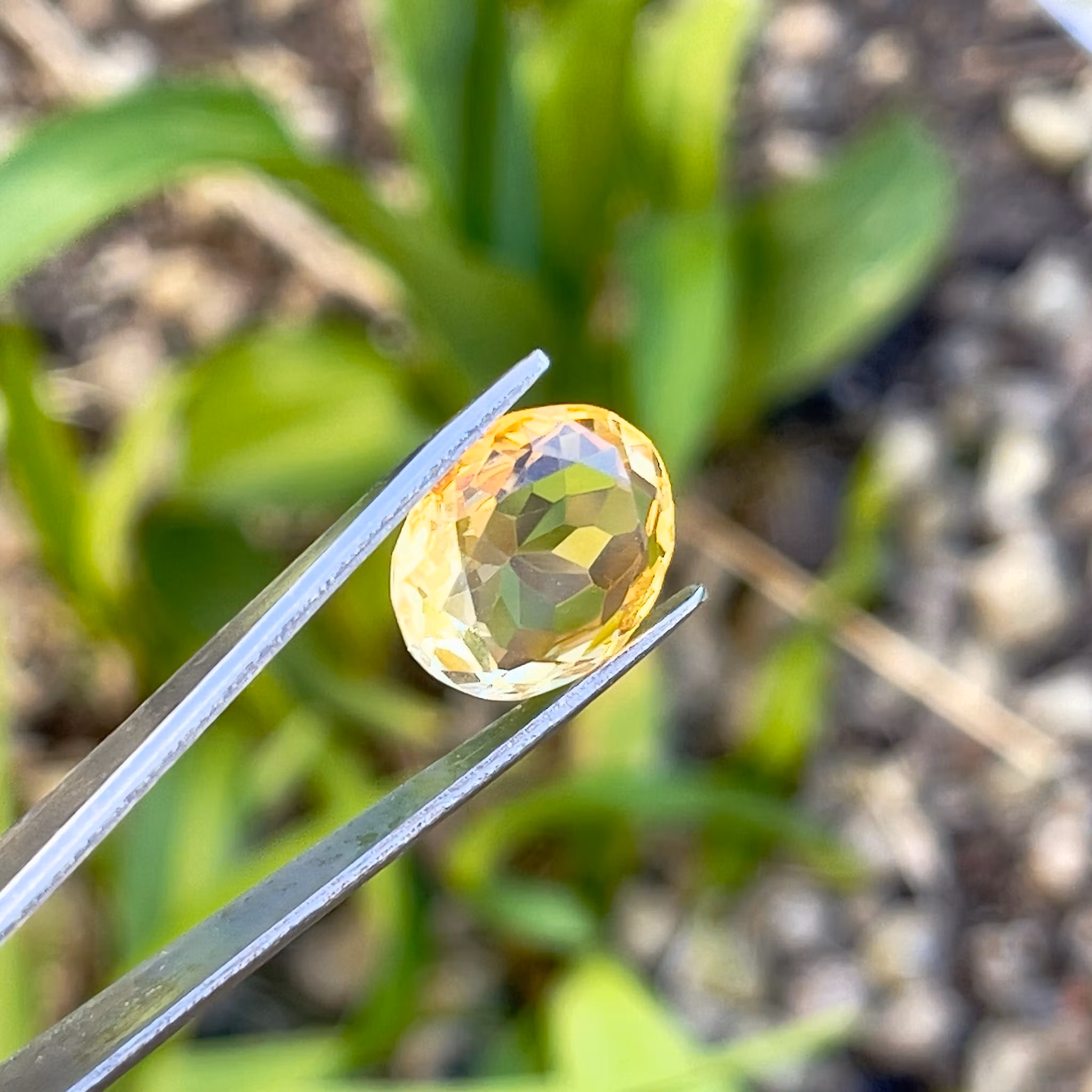 Vacker naturlig citrin med elegant oval slipning och varm gyllengul färg. Stenen har fin lyster, god transparens och ett levande färgspel i ljuset. Perfekt för exklusiv ring, hänge eller specialbeställt smycke.