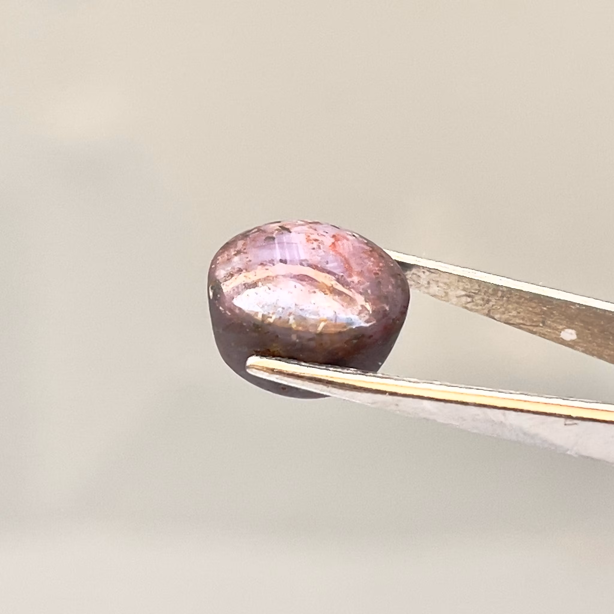 Magnifik naturlig rubin på hela 11.35 carat i elegant hög cabochon slipning. Stenen uppvisar vackra rödrosa till rosaröda toner, levande inre glöd och fint ljusspel som förändras vid rörelse. Under stark punkt belysning anas stjärneffekt, vilket gör stenen extra eftertraktad.