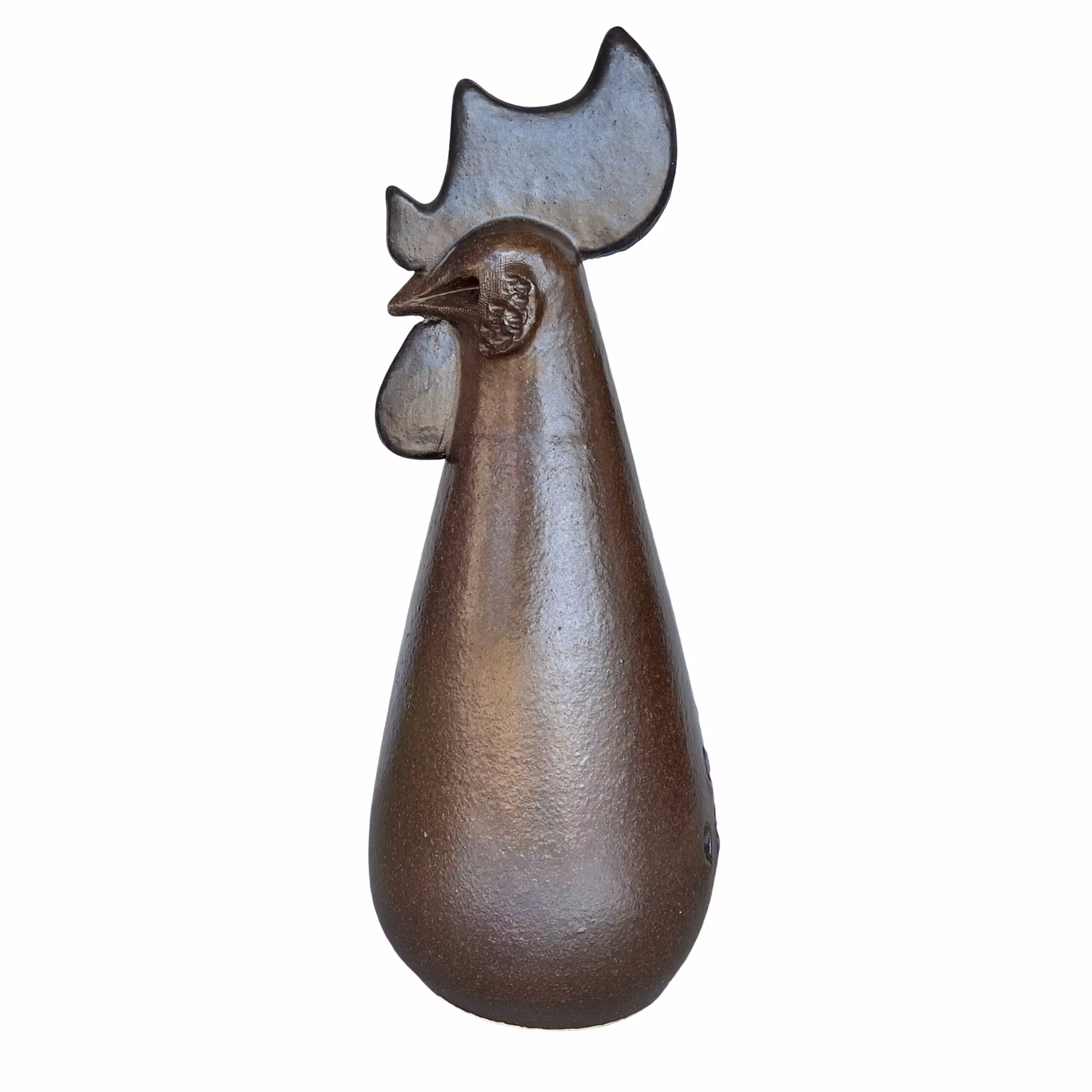 Dekorativ tupp i glaserat stengods från Barsebäckshamn Keramik fabrik, formgiven av Nils Allan Johannesson. En uttrycksfull svensk design figur med vacker brun glasyr och ljusare detaljer på kam och haklapp. Stilren och tidlös inrednings detalj som passar både moderna och retro miljöer.