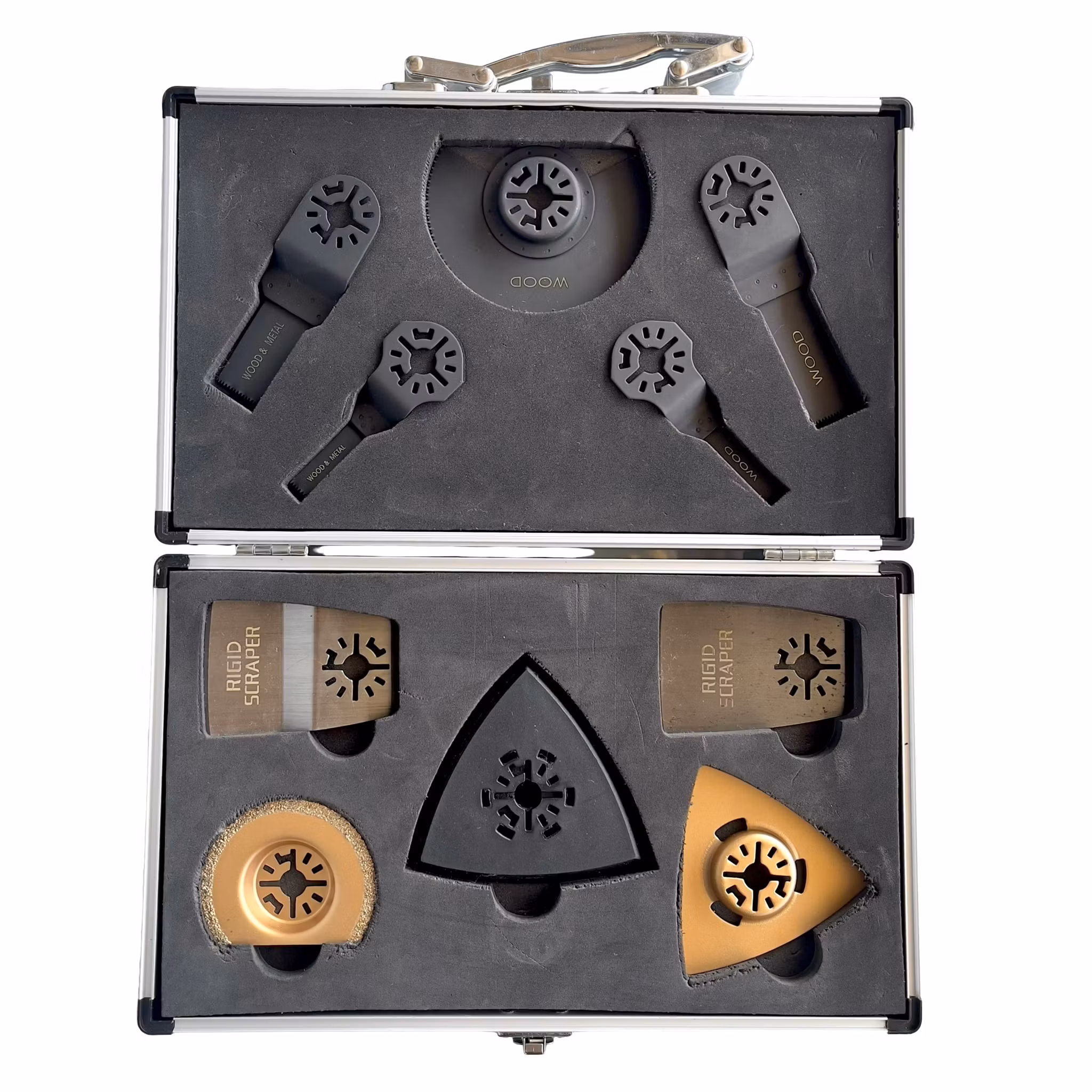 Oanvända multiverktyg tillbehör - Blad & skrapor i aluminium väska