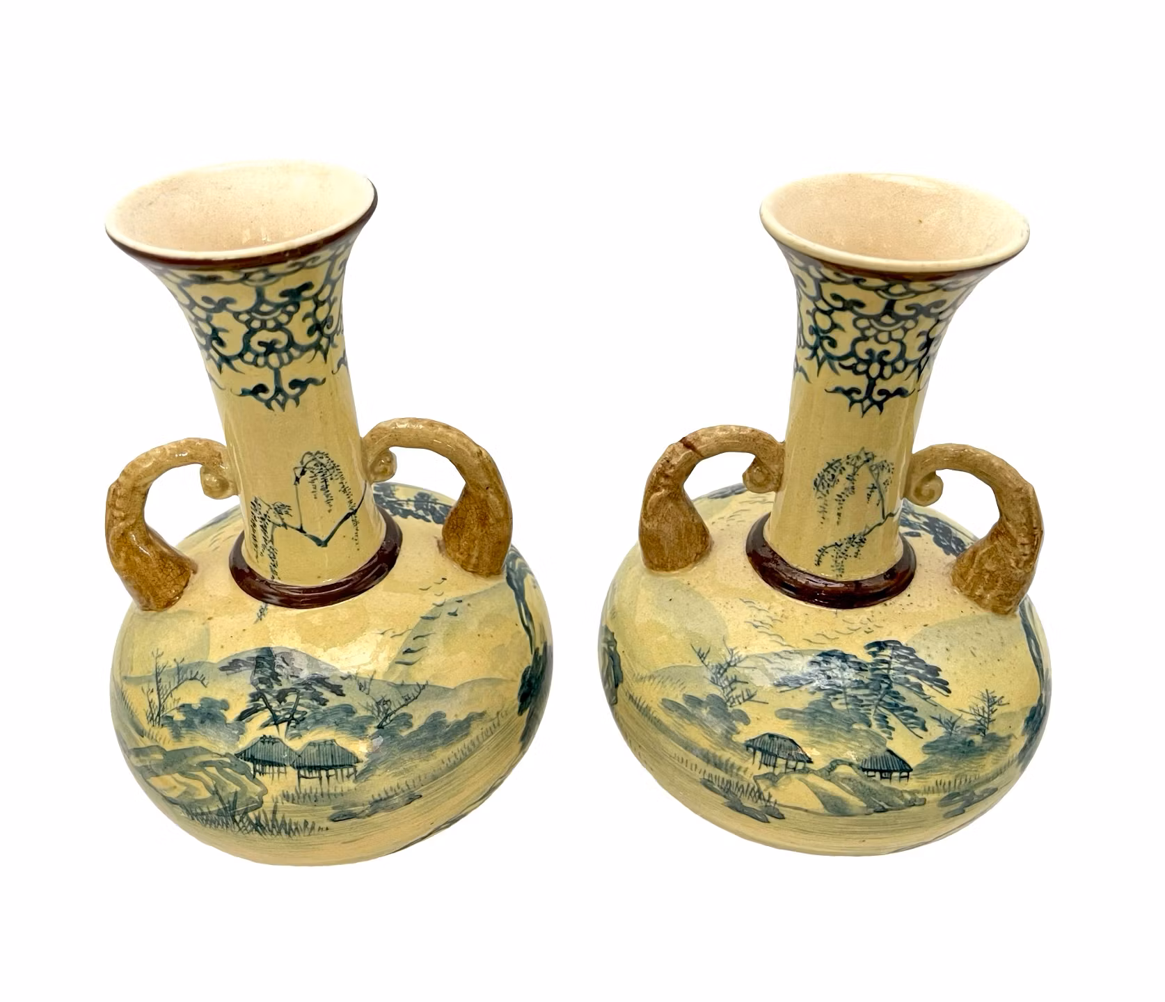 Ett exklusivt par antika majolikavaser från 1800-talet, tillverkade i Kina.