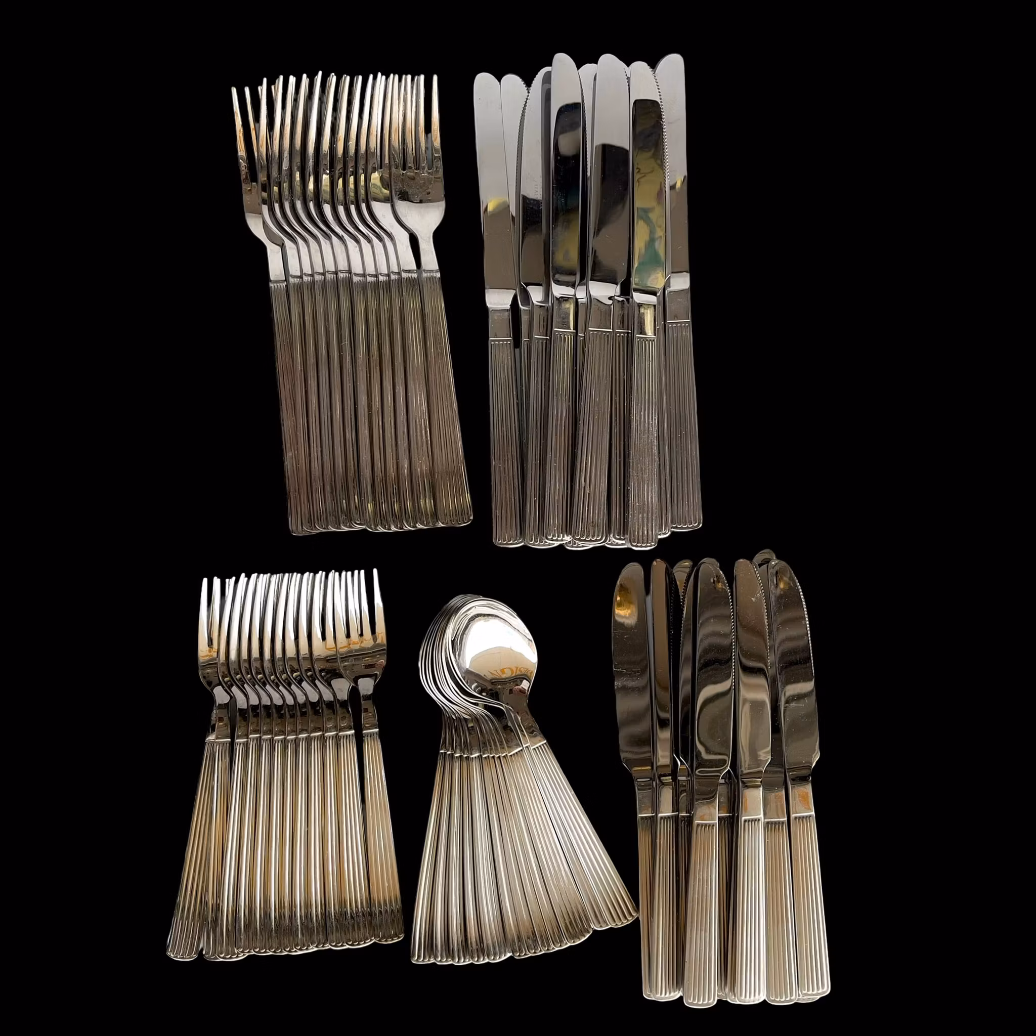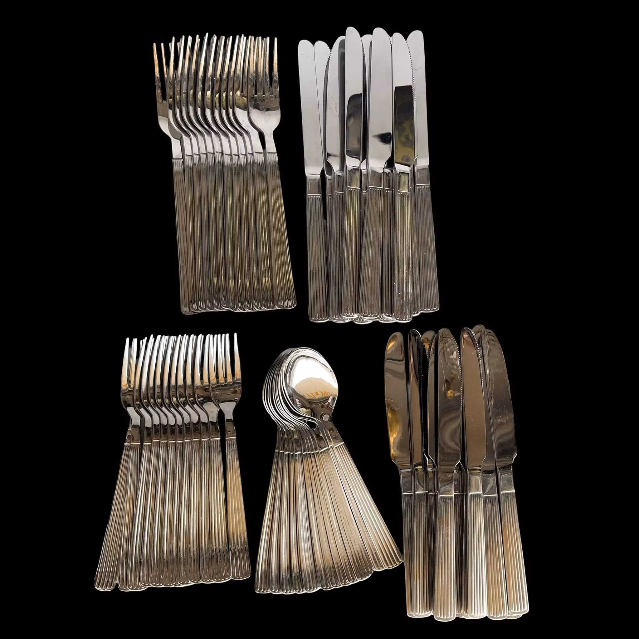 Säljer ett stilrent och välgjort bestickset från Pinti Pintinox Italy, bestående av totalt 60 delar i en klassisk och tidlös design.