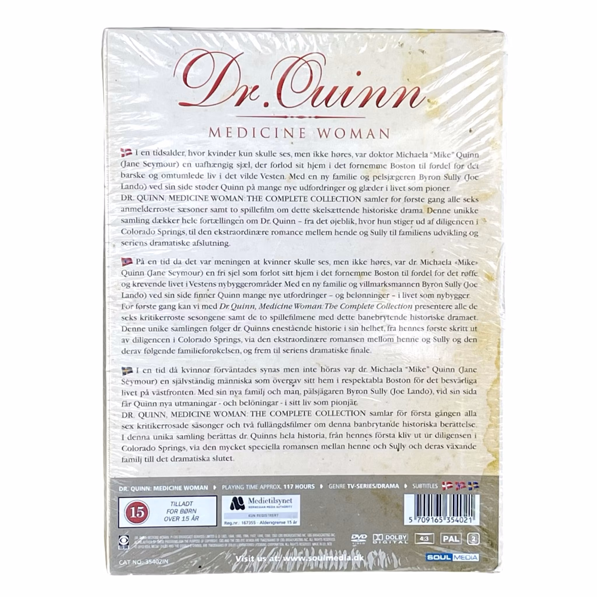 Komplett DVD box med den klassiska TV serien Dr. Quinn, Medicine Woman med Jane Seymour och Joe Lando. En omfattande samling med alla säsonger och lång speltid. Perfekt för samlare och fans av klassiska dramaserier.