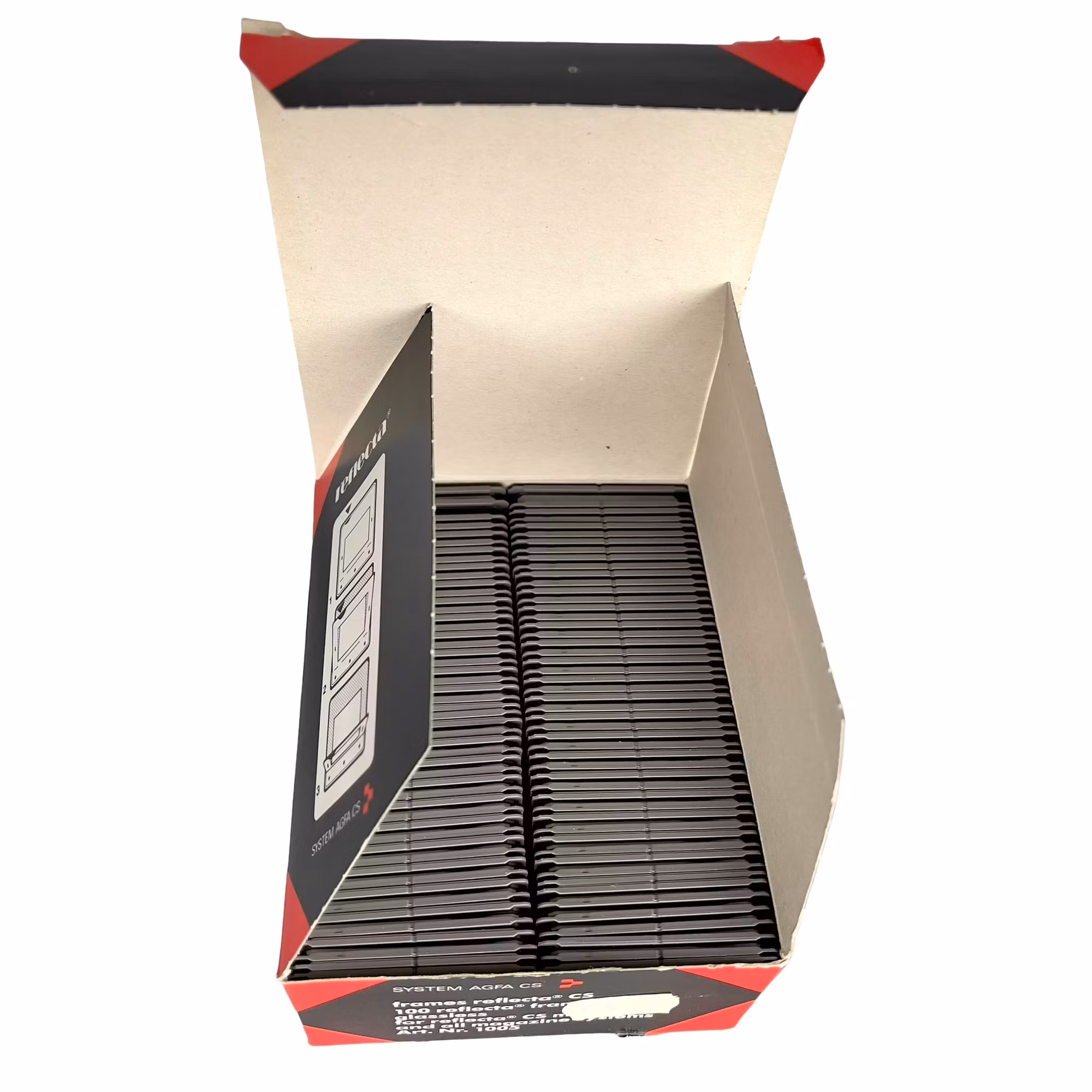 Kartong med 100 stycken Reflecta CS diaramar för 35 mm diafilm (24×36 mm). Dessa ramar är avsedda för AGFA CS system och kompatibla magasin system. Perfekt för fotografer, samlare och fotoentusiaster som arbetar med analoga diabilder.