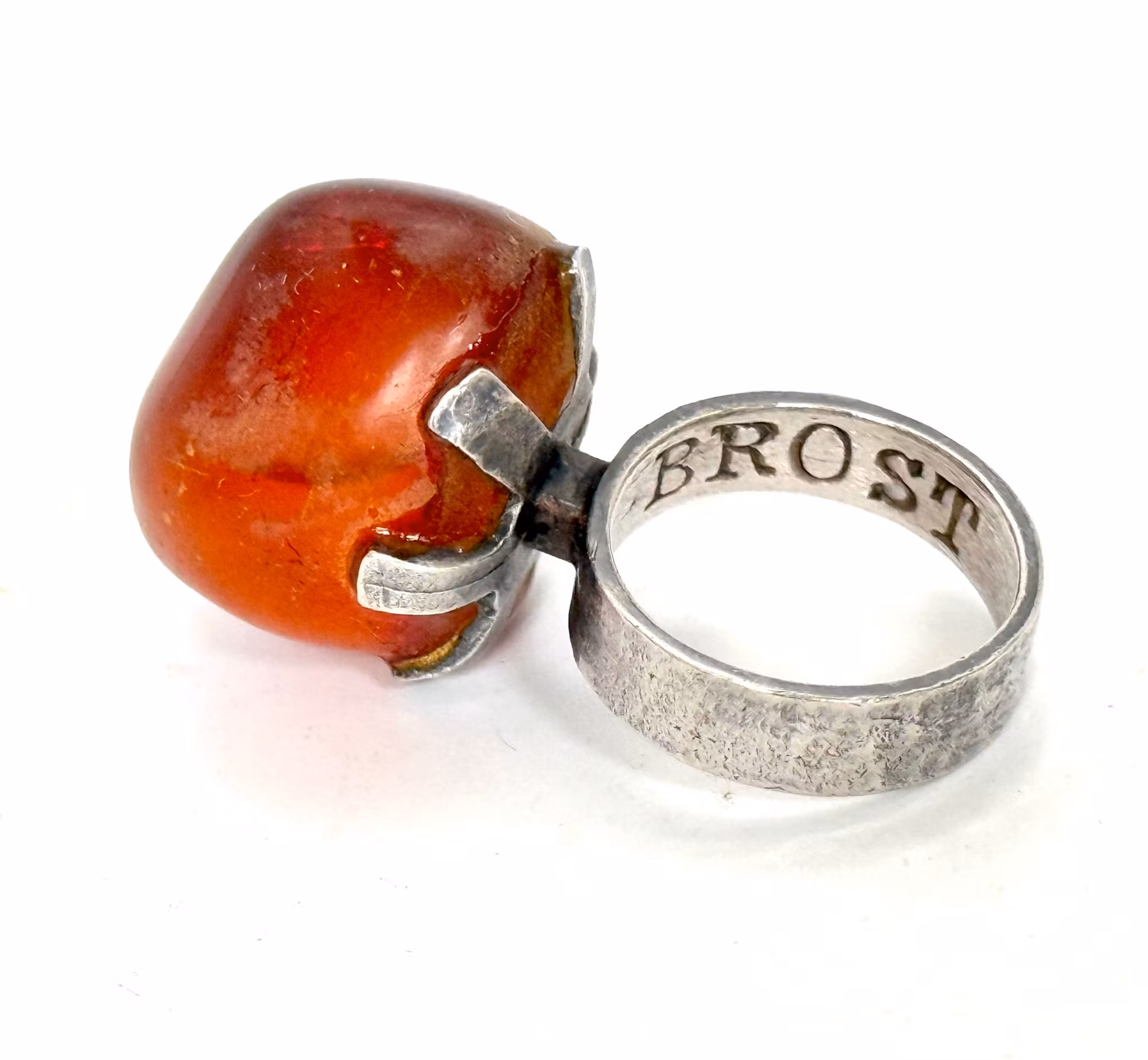 Leif Brost, Sterling silver & bärnsten Ring 99,50 € Slutsåld Information Leif Brost, Sterling silver & bärnsten RingStorlek: 17 mm, Vikt: ca 9 gram