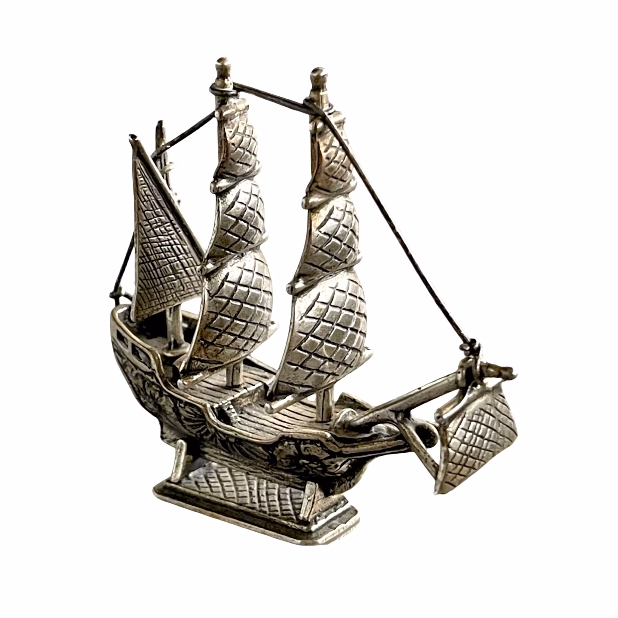 Säljer en mycket vacker och detaljrikt utförd skepps modell i äkta silver (830). Föreställer ett klassiskt segel fartyg med master, segel och rigg. Ett utmärkt föremål för samlare, maritim inredning eller som exklusiv present.