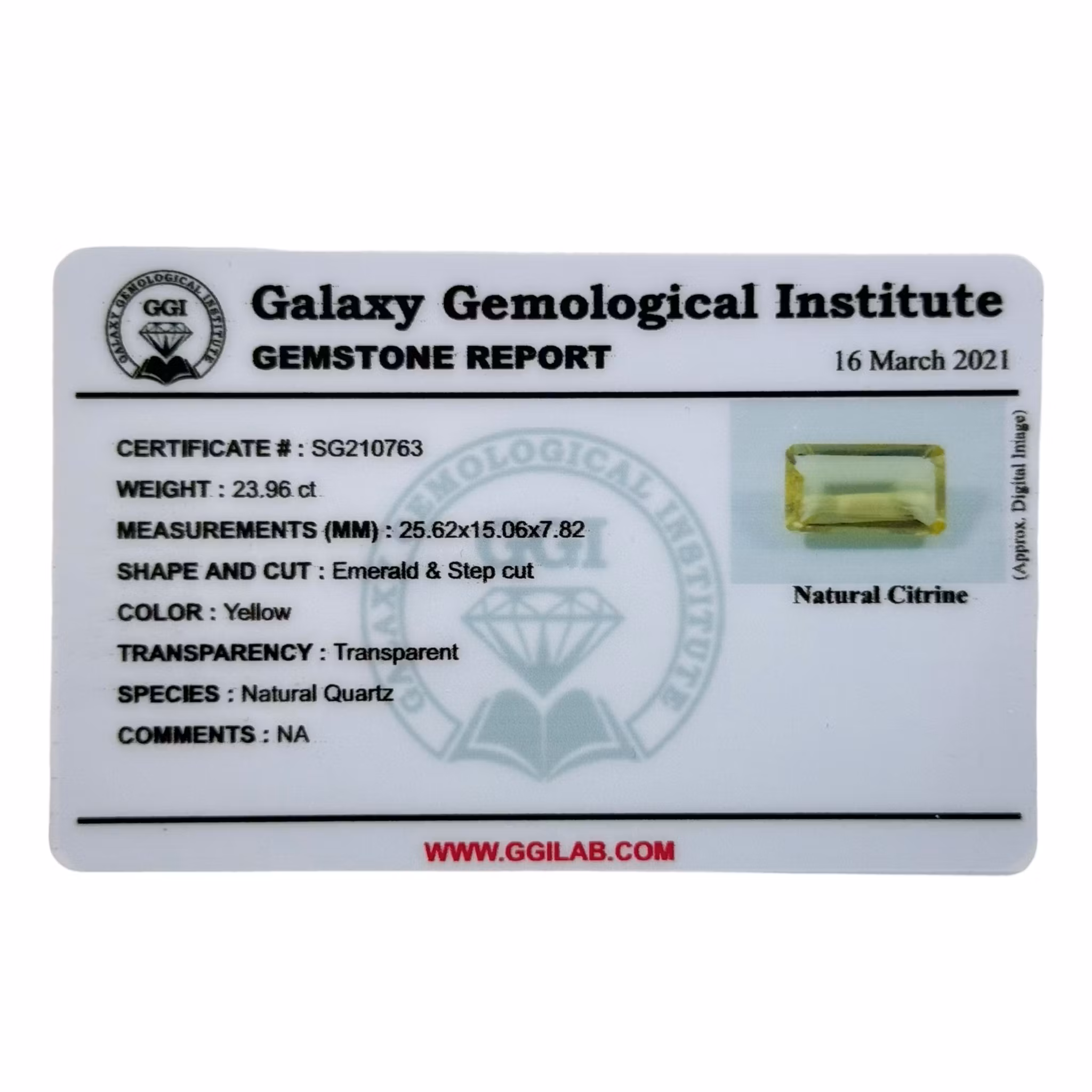 23.96 Karat naturlig obehandlad Citrin med certifikat