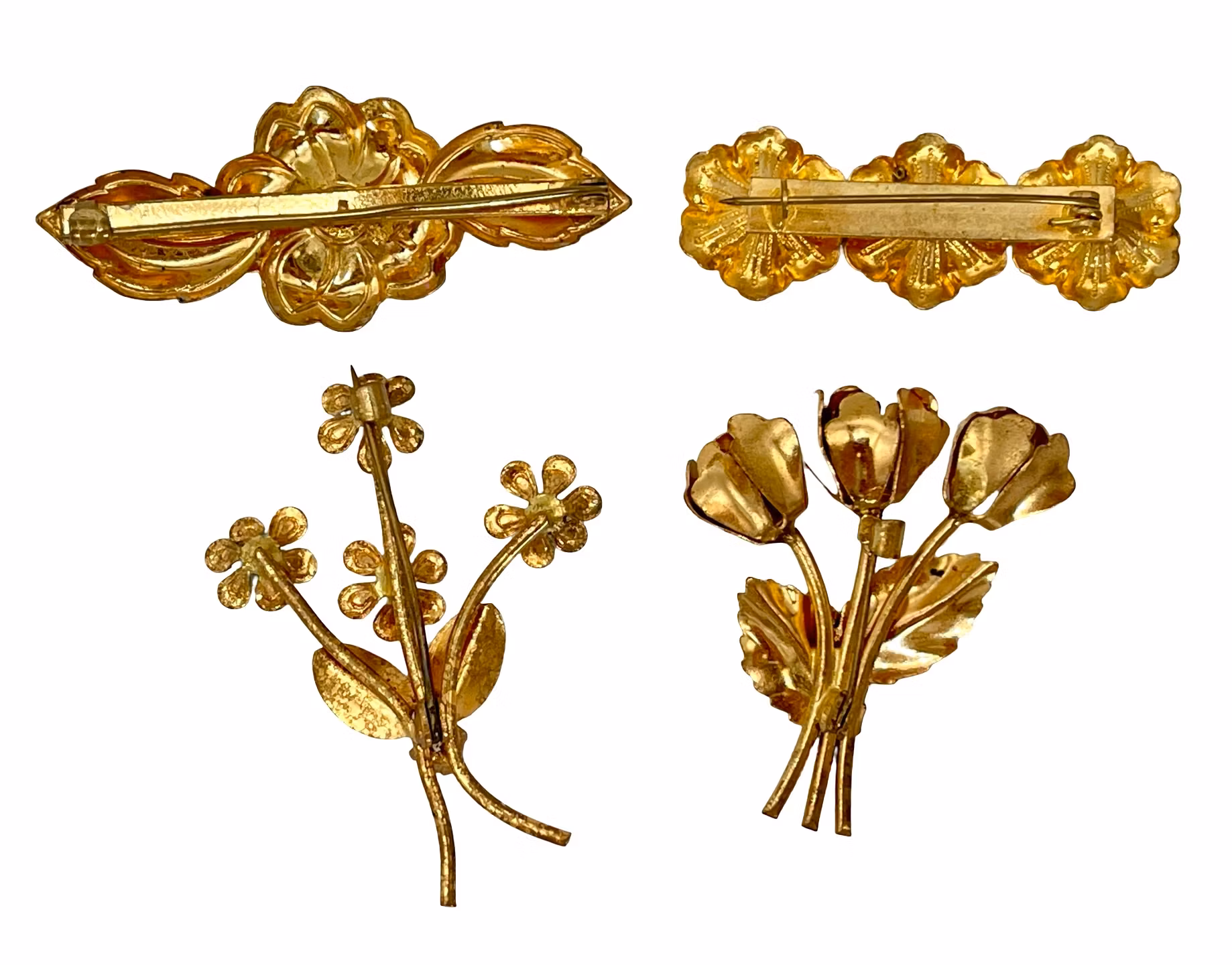 Vintage 4 BROSCHER I form av blommor, Handmålade