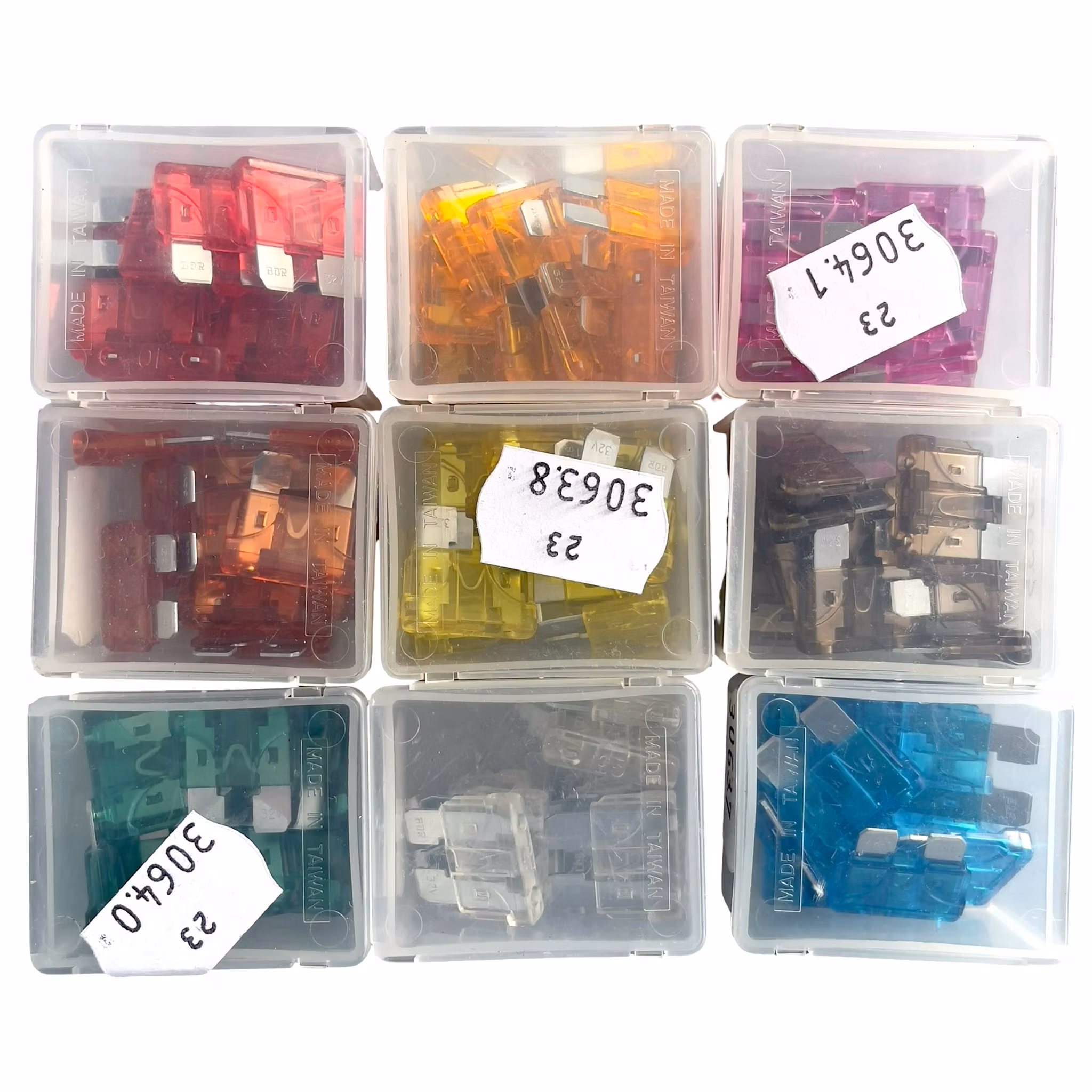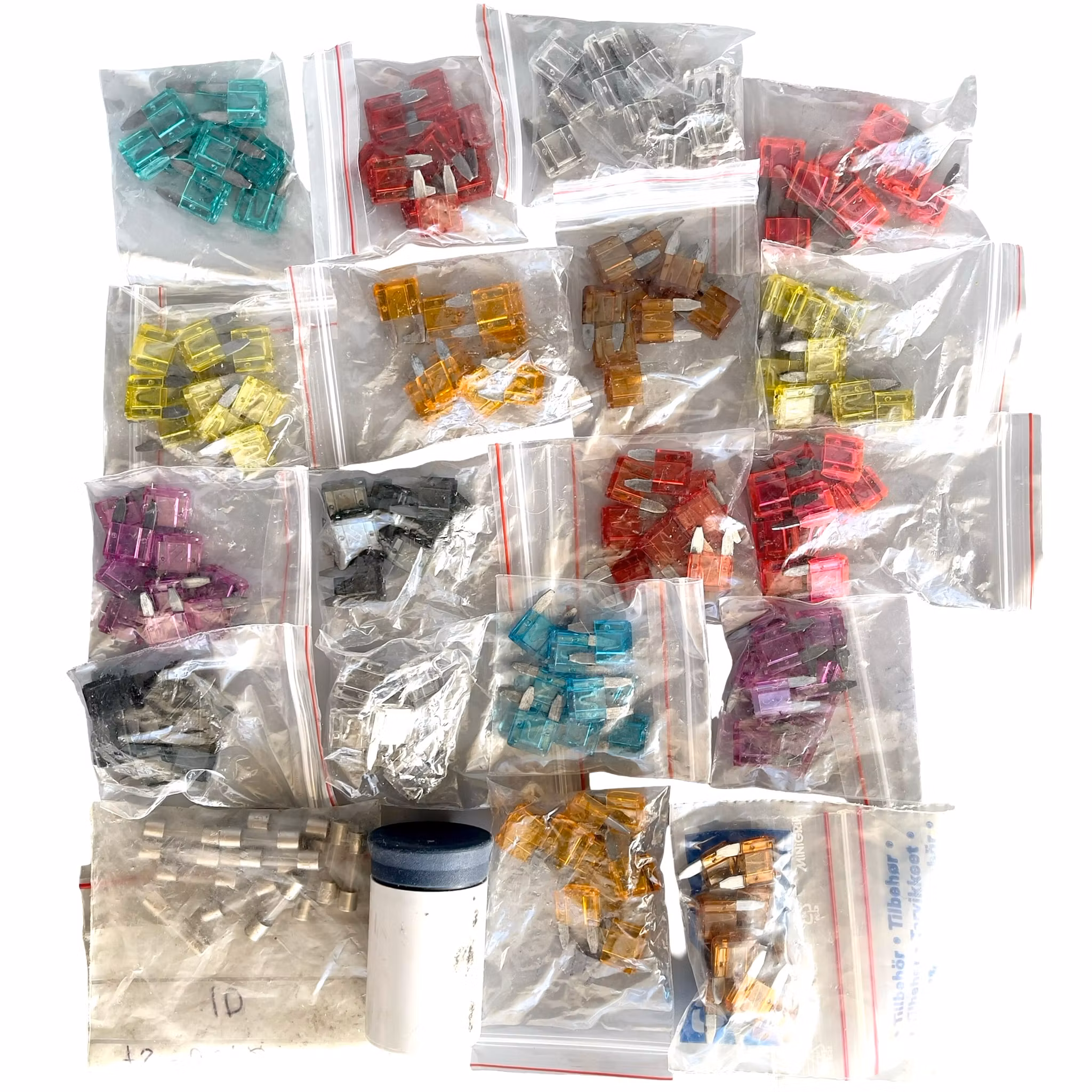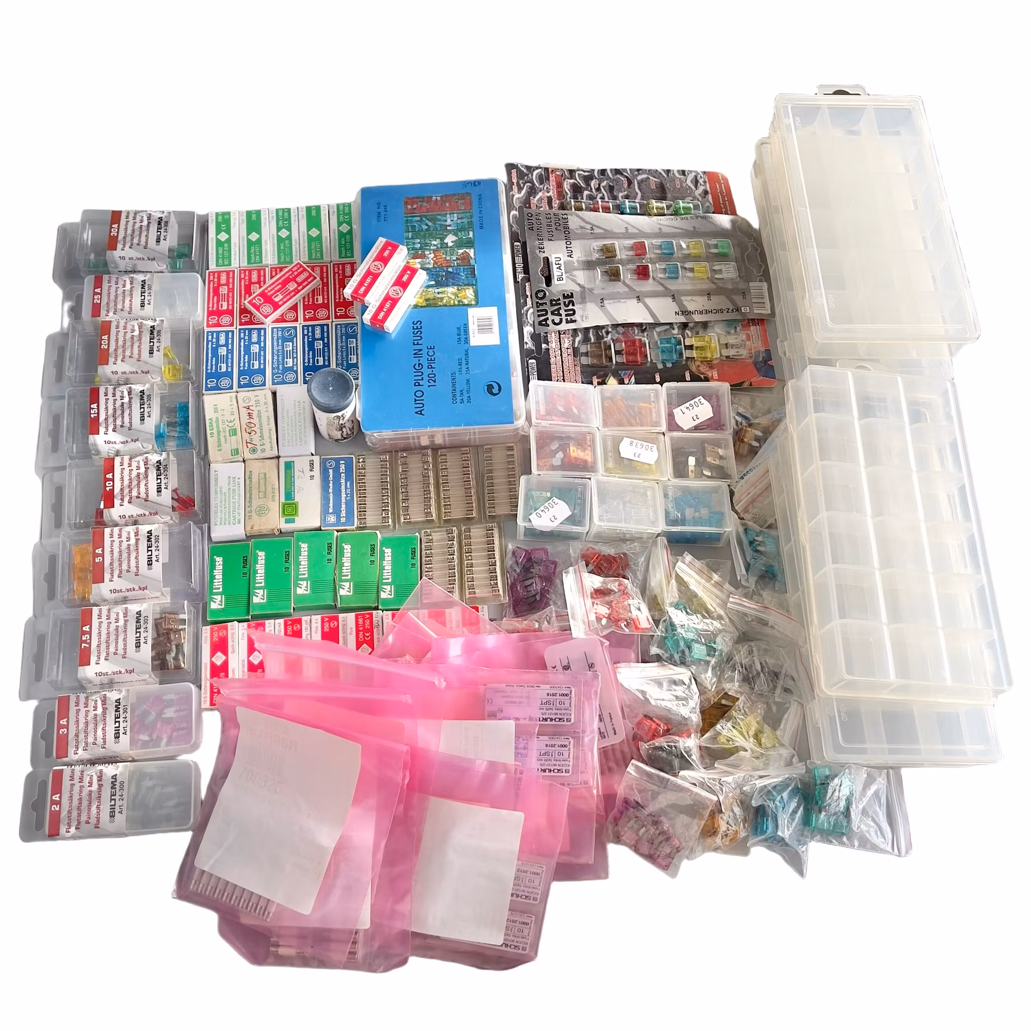Stort parti säkringar - Bil säkringar + Glasrörs säkringar + Sortiments lådor