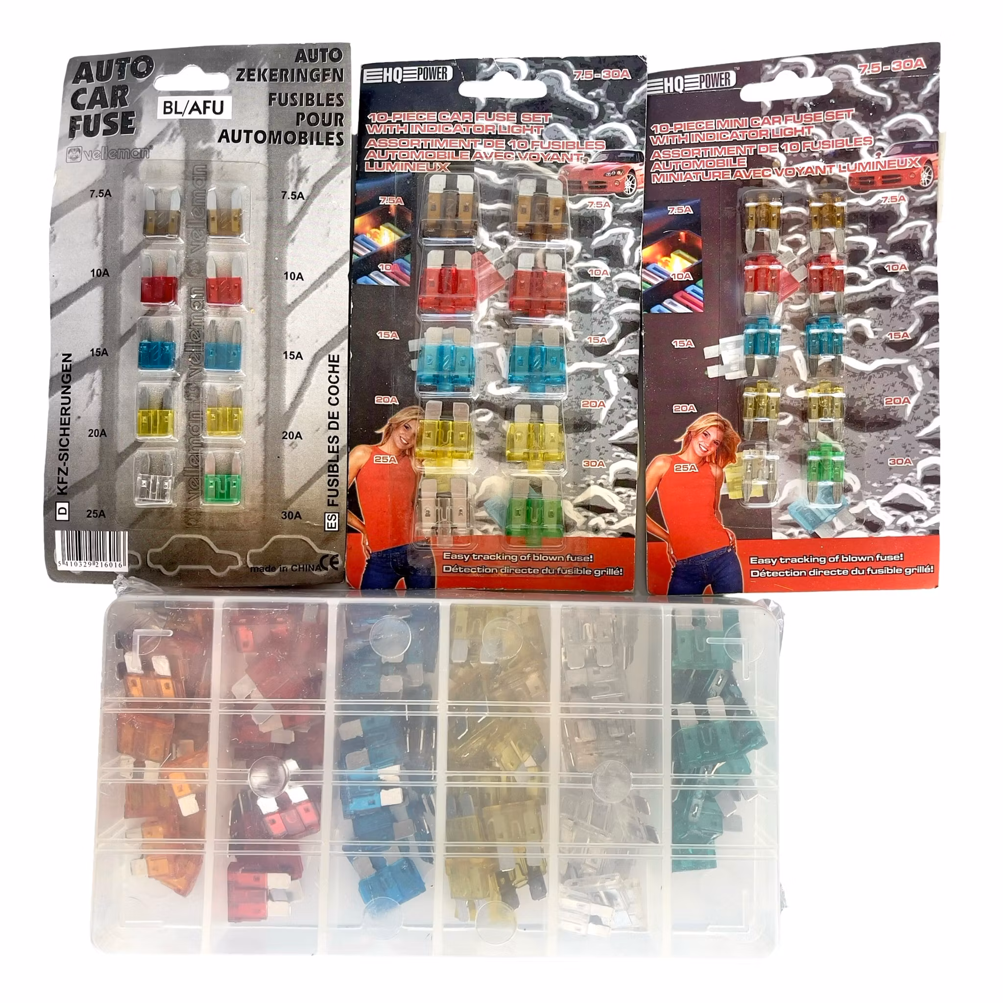 - Mini flatstifts säkringar i flera storlekar