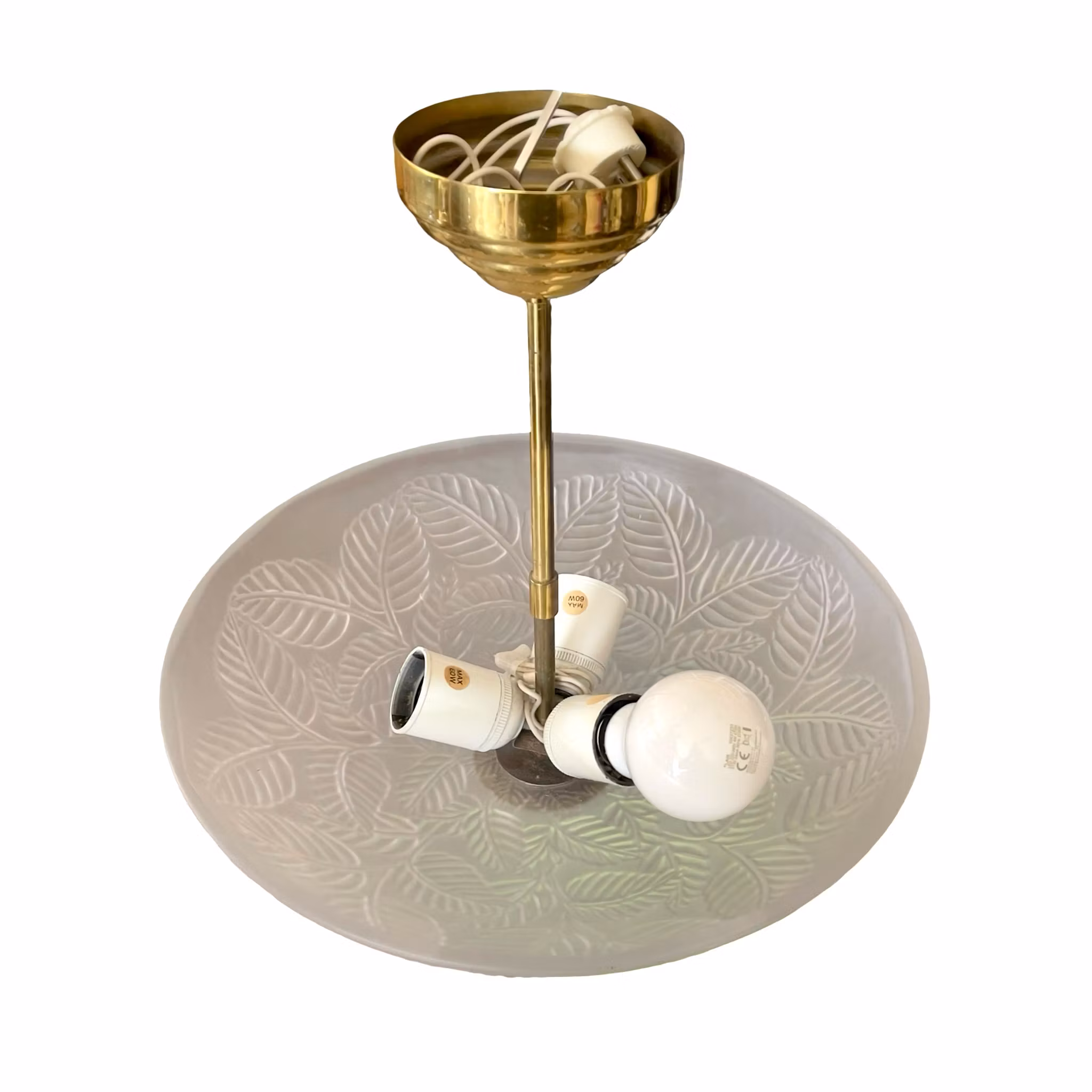 Taklampa / Plafond i frostat glas med bladmönster - Mässings detalj - Sweden