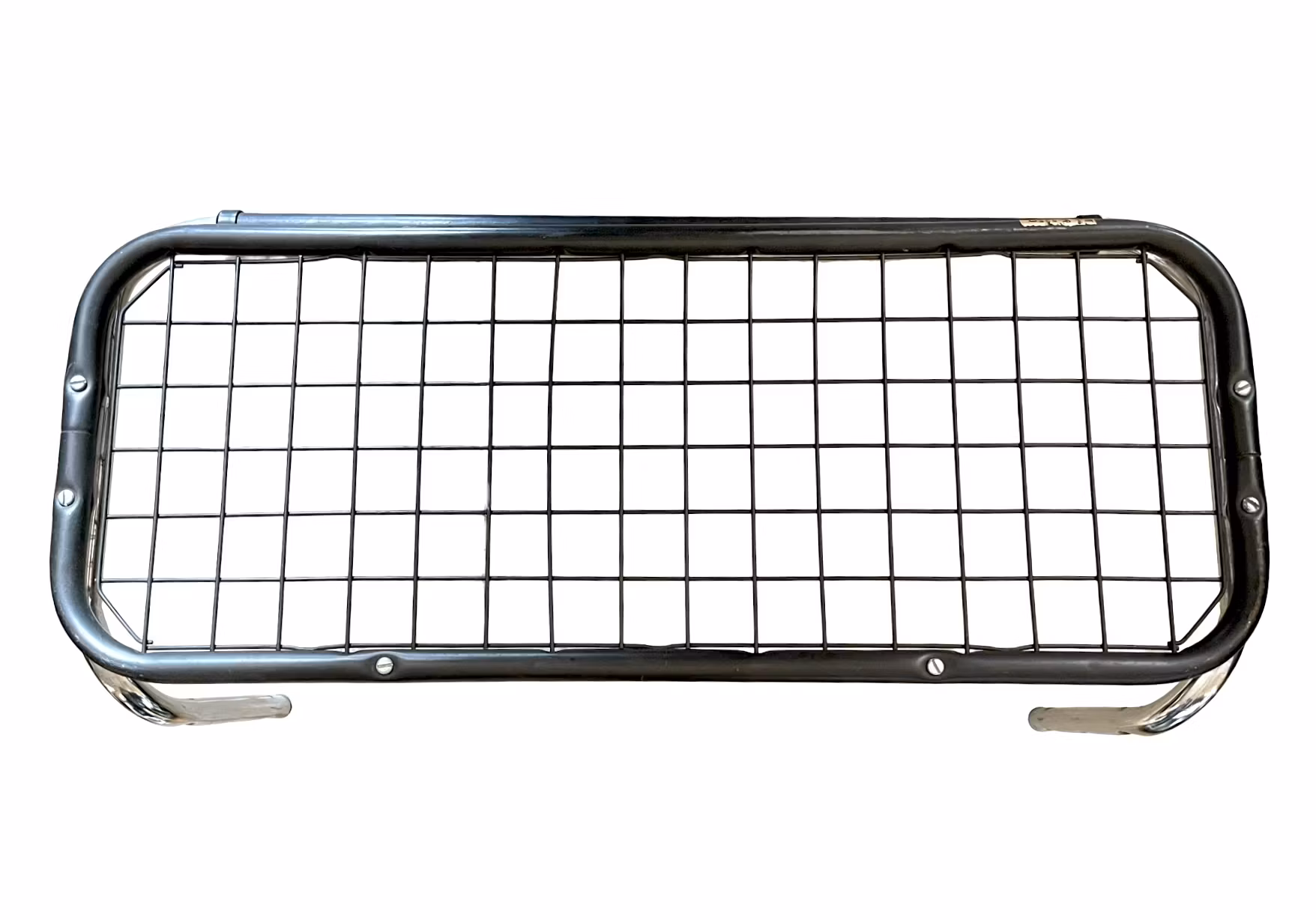 Denna modell kallades ofta "SM-hyllan" och användes i många svenska hem under 1950-1970-talet. Robust konstruktion i kromat stål med svartlackerade detaljer och gallerhylla i metall. Två svarta krokar undertill för upphängning av kläder eller väskor.