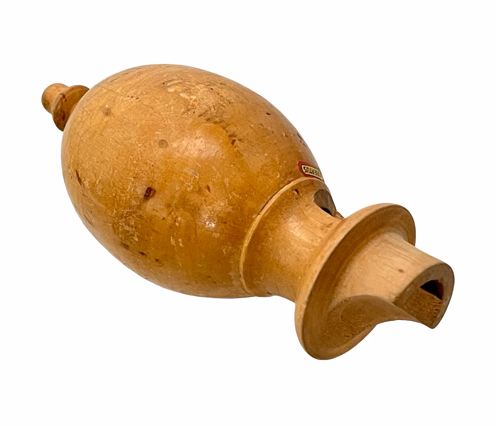 Denna typ av lockpipa användes traditionellt för att imitera ljud från fåglar och småvilt vid jakt. Märkt med originaletikett: "Hubertus".